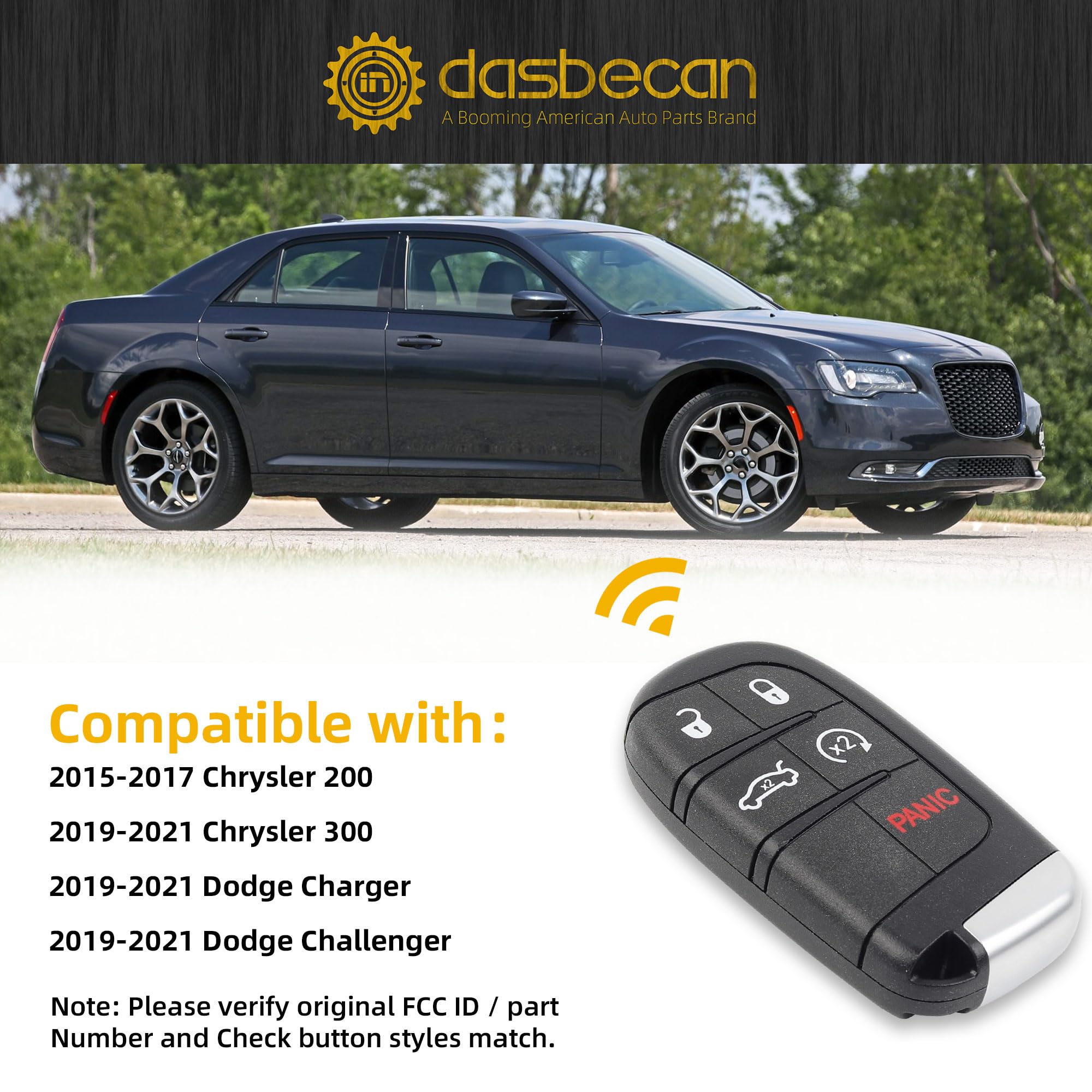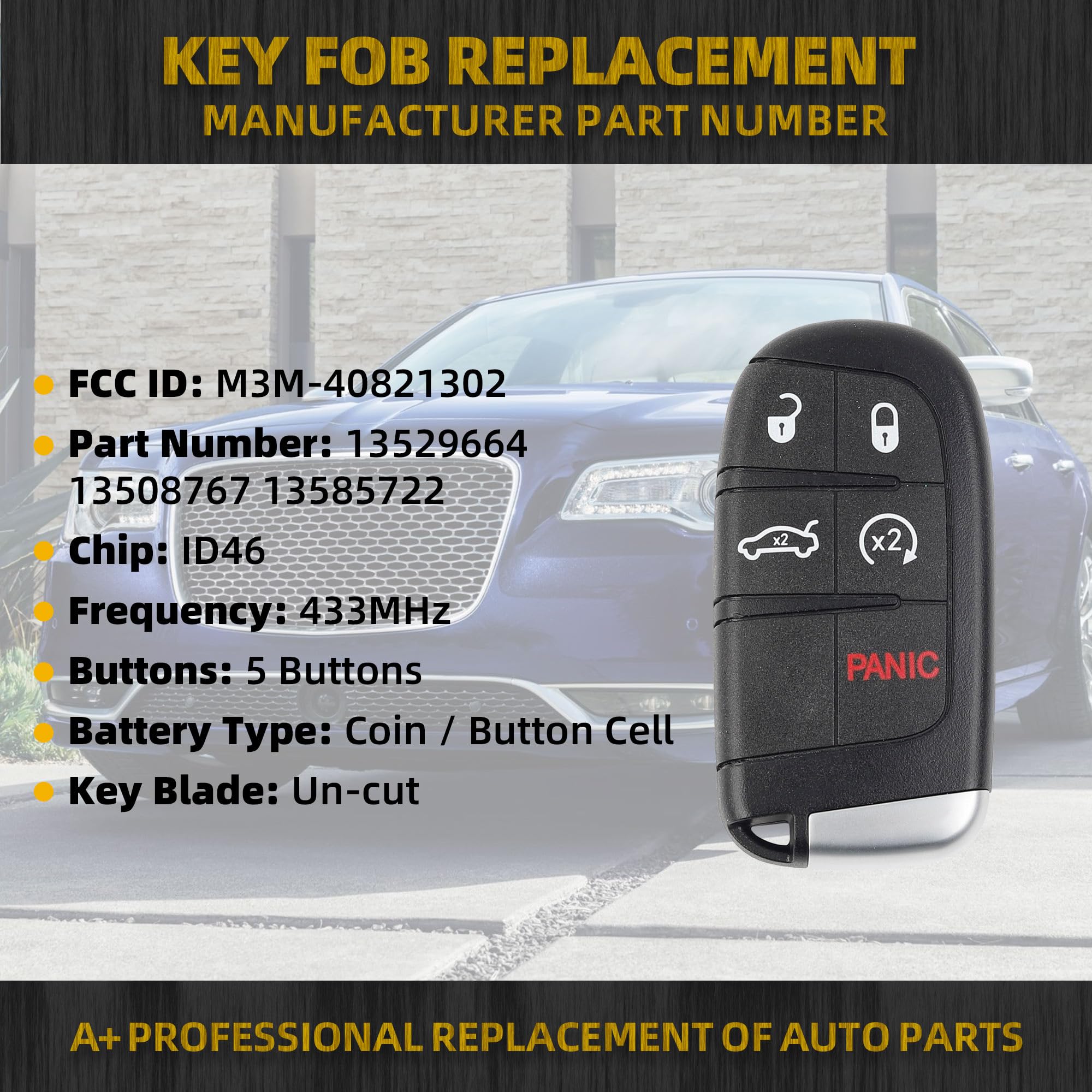 Part Number: 68155687AB, 68394191AA, 68394195AA, FCC ID: M3M-40821302, M3M40821302, Please check OE number/FCC ID and product picture with original one before purchase.