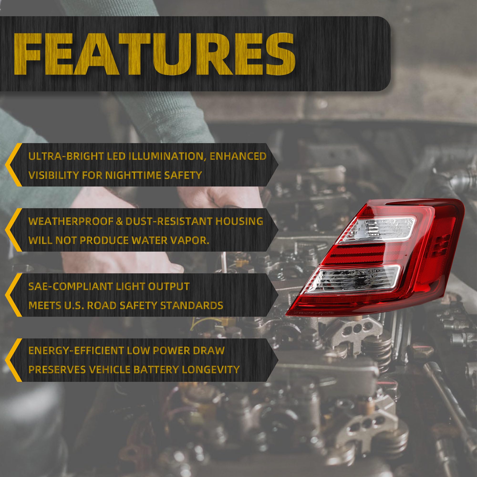 [Features]: Tail Lamp perfectly matches the original factory interfaces. There is no need for cutting or modification. It can be quickly installed within a few minutes.