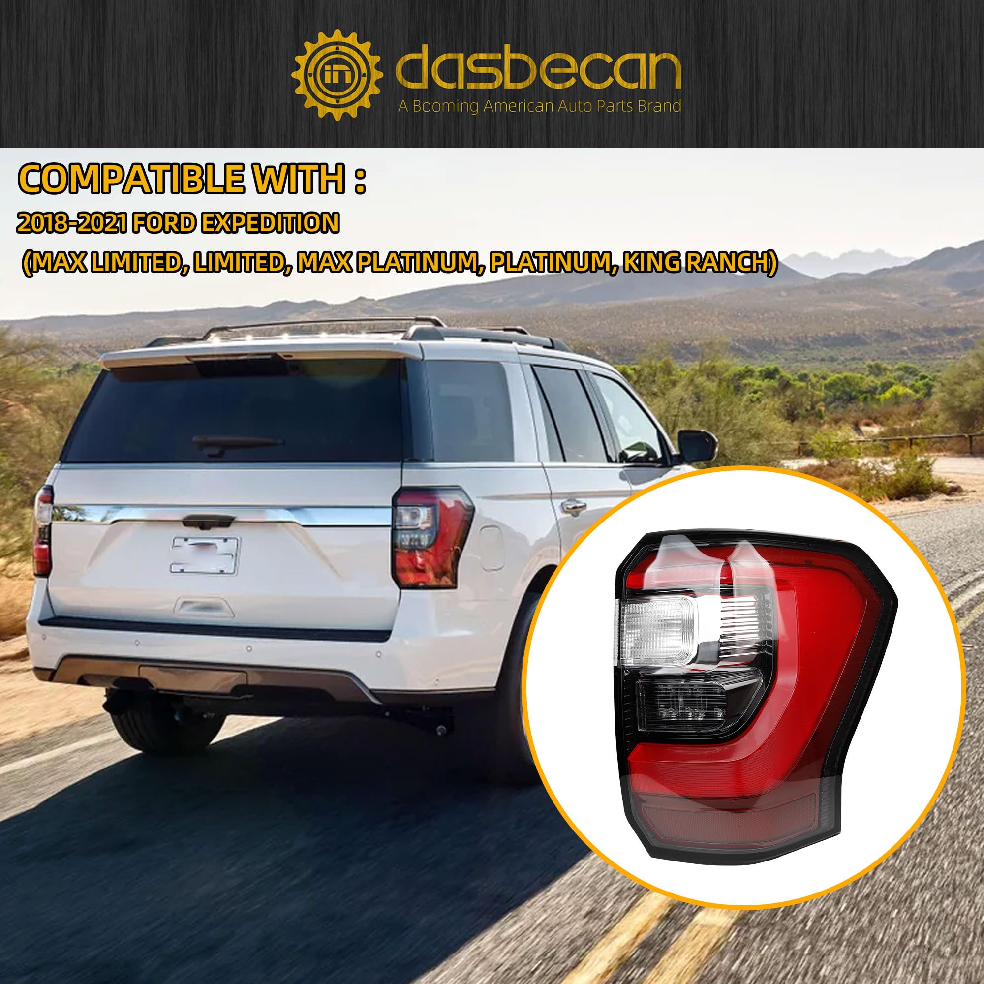 【Fitment】The Tail Light Assembly is compatible with 2018-2021 Ford Expedition (MAX Limited, Limited, MAX Platinum, Platinum, King Ranch).