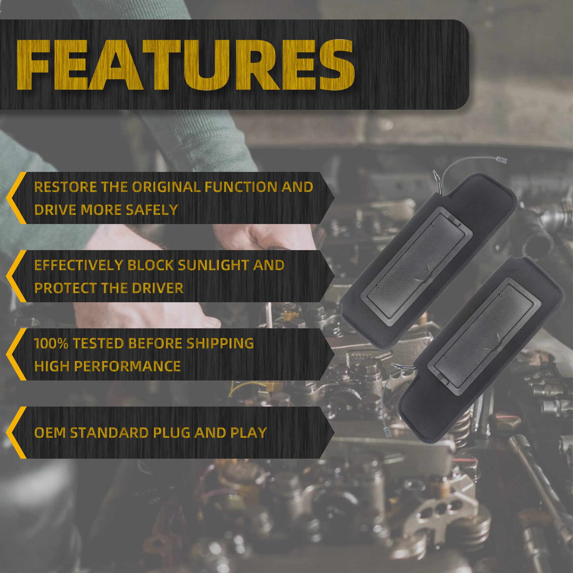 【Package list】Left Driver Side Sun Visor x1pc, Right Passenger Side Sun Visor x1pc.