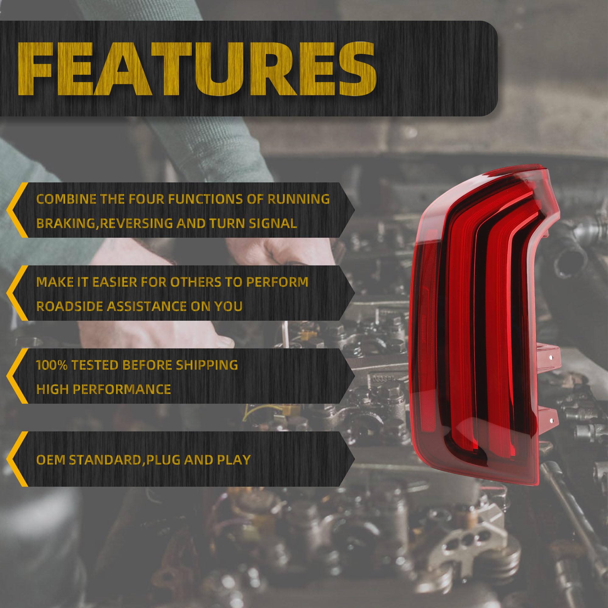 [Features]: Precisely models engine. It can be directly plug and use with the original factory interfaces. The full LED taillight assembly is highly bright, It has the functions of braking, turning, and reversing.