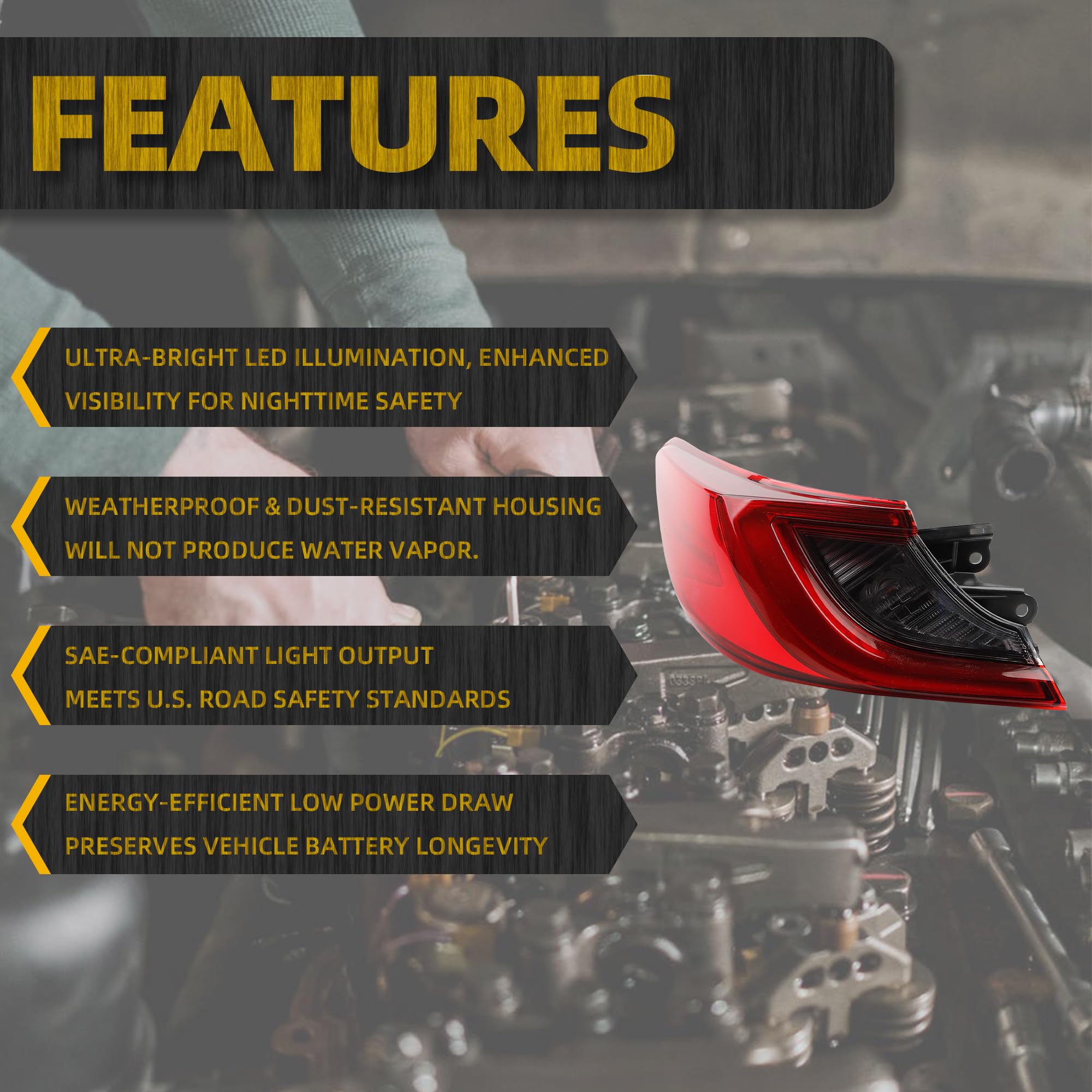 Features: Our taillight assembly uses LED light source, it has high intensity and strong penetration. It can improve safety during nighttime driving and adverse weather conditions.