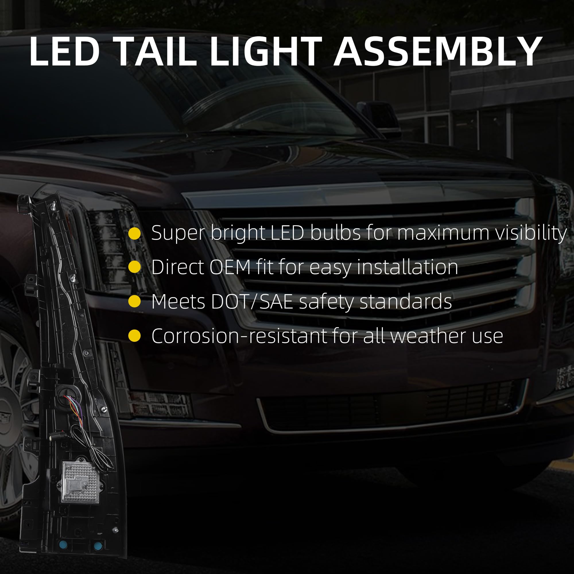 Fitment: This driver side LED taillight is compatible with 2015-2019 Cadillac Escalade.