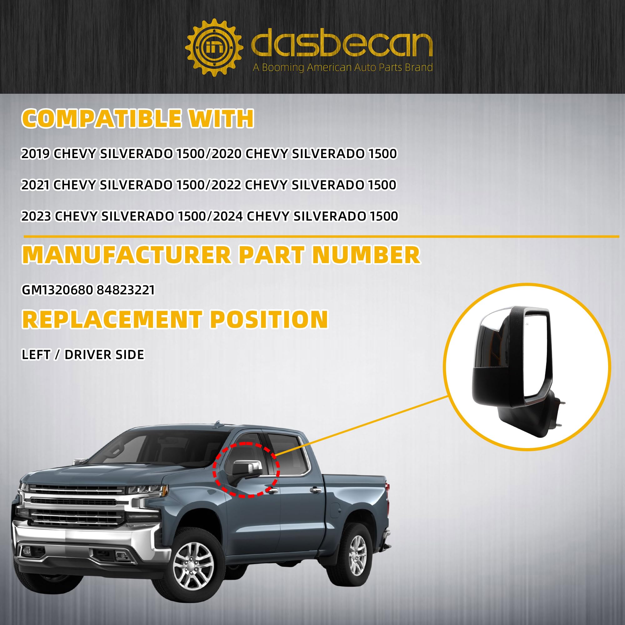 【Comaptible With】The Driver Side Mirror Compatible With 2019 2020 2021 2022 2023 2024 Chevrolet Silverado 1500