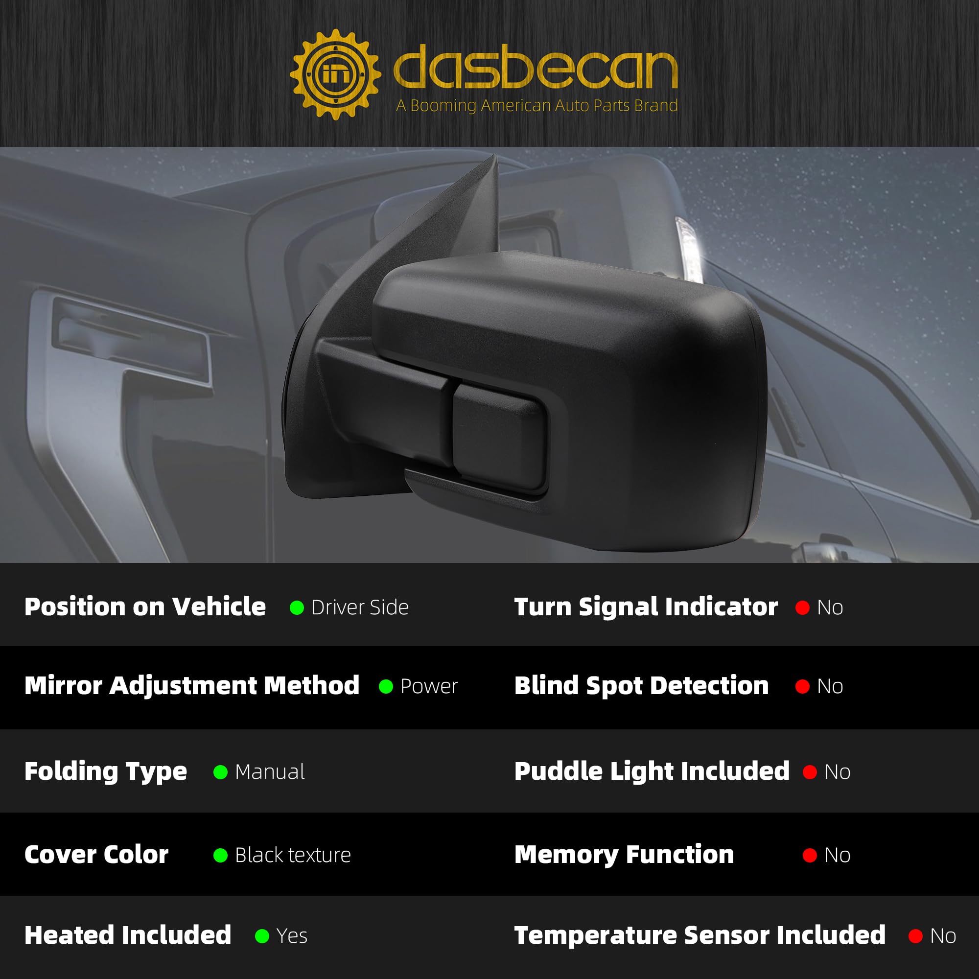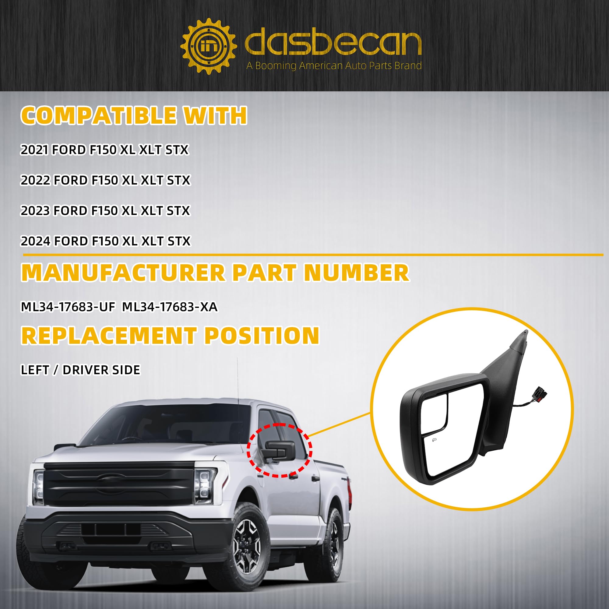 【Comaptible With】 The Left Mirror Assembly Compatible with 2021 2022 2023 2024 Ford F150 XL/ XLT/ STX
