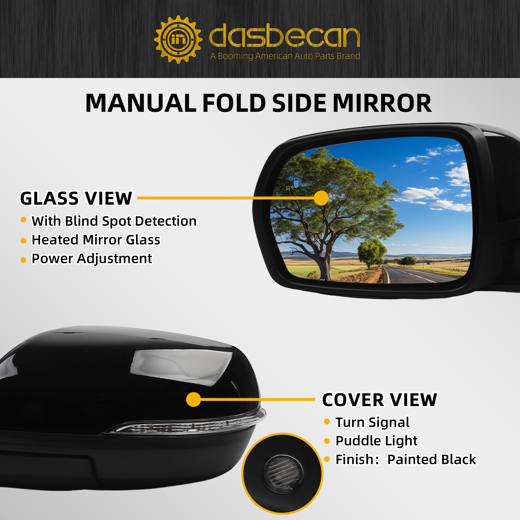 Specifications: Power Glass Adjustment, with Heated, with Signal Light (LED Turn Indicator), with Puddle Light, with Blind Spot Monitor, Manual Folding, Black Cover, 9 Pins Connector.