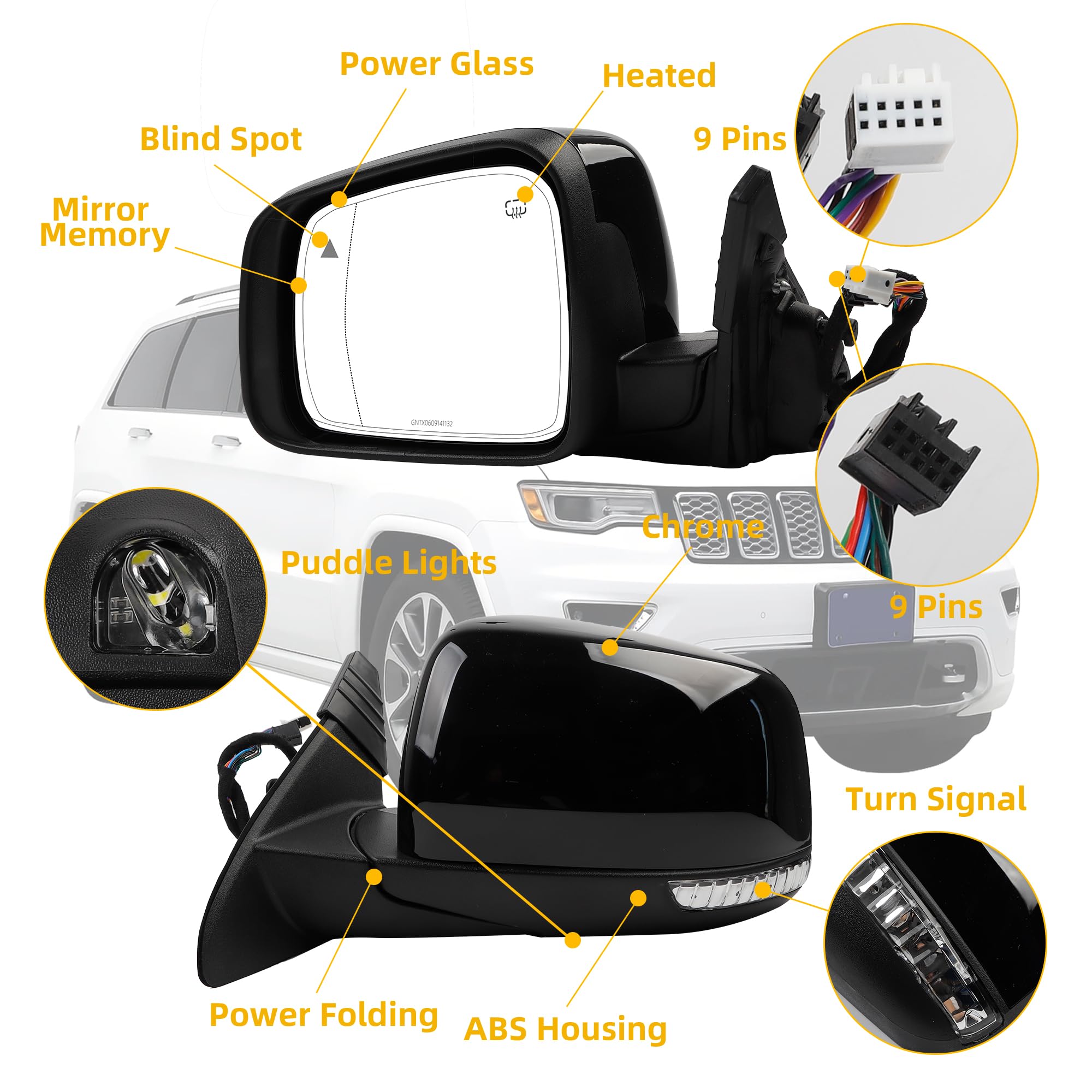【Fitment】The Door Mirror Assembly fits for Jeep Grand Cherokee 2014-2021, Jeep Grand Cherokee WK 2022 .