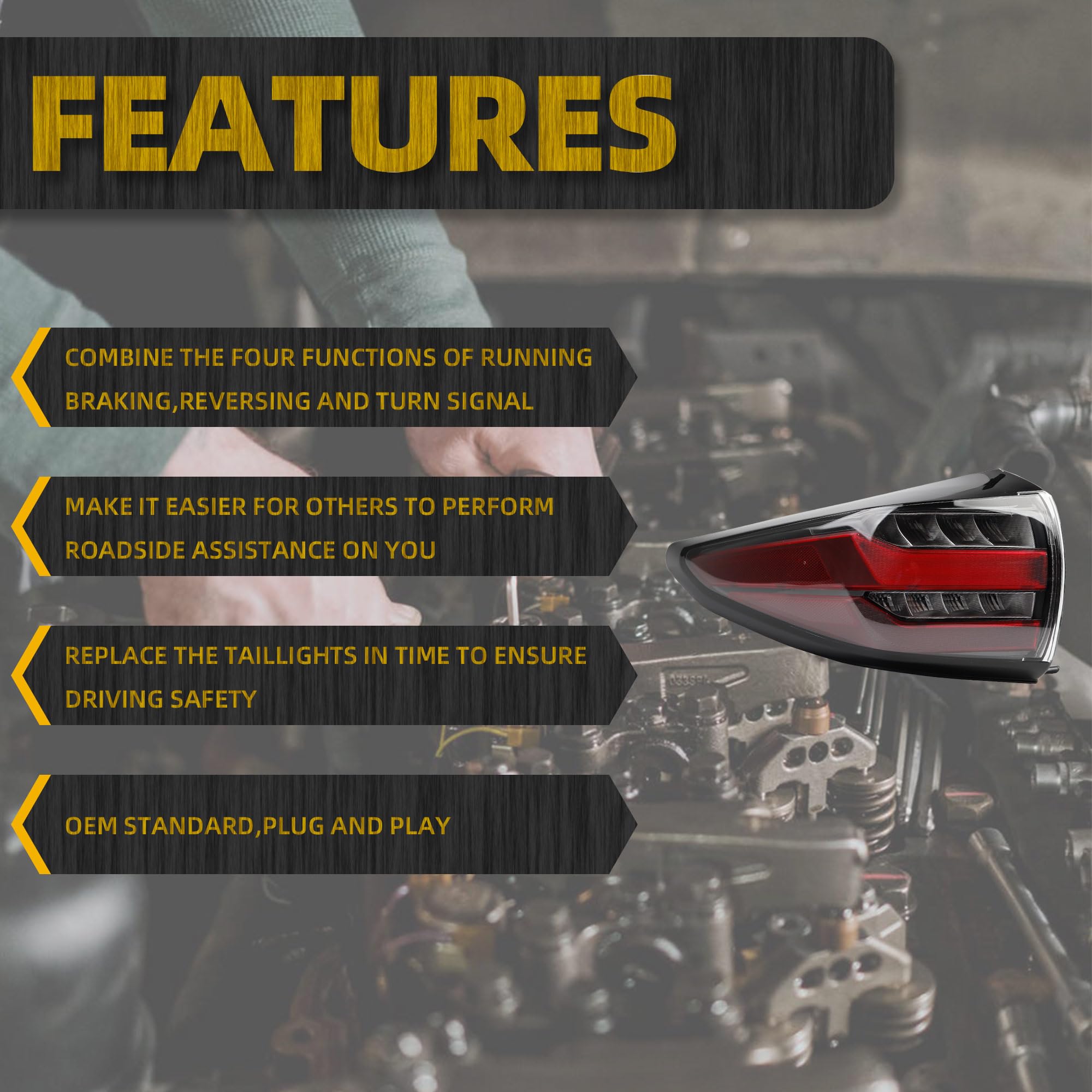[Feature]: The Tail light is Made By high quality plastic, it is not easily damaged. Specifically OEM design. There is no need for cutting or modification. It can directly replace the original factory tail lights, retaining the original vehicle's wiring interfaces, and the installation can be completed within a few minutes.