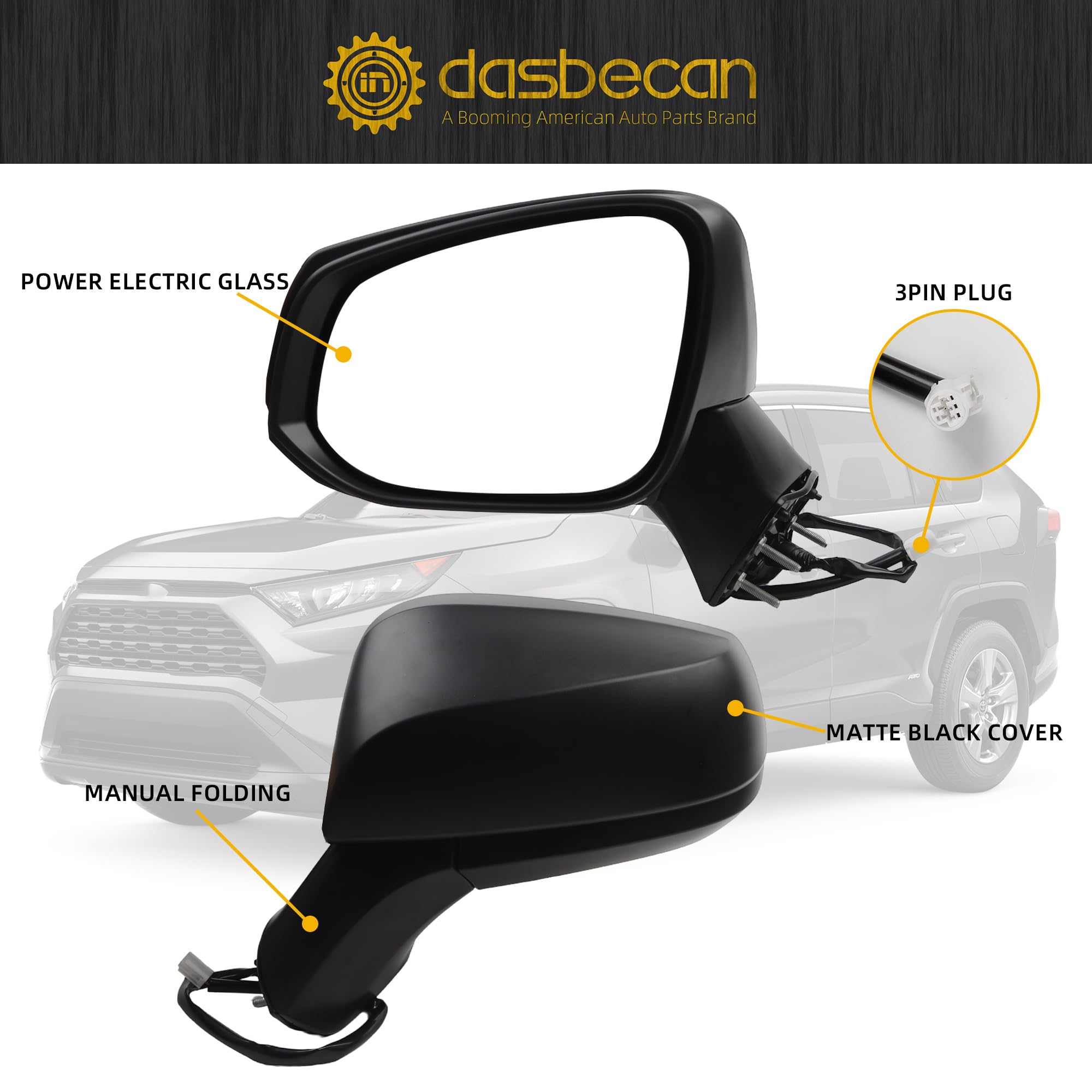 【Note】The Color Of The Side Mirror Is Matte Black, It Fits 3Pins Toyota Rav4 Left Mirror. Match US-Version, No Needs For Other Accessories, Easy Installation