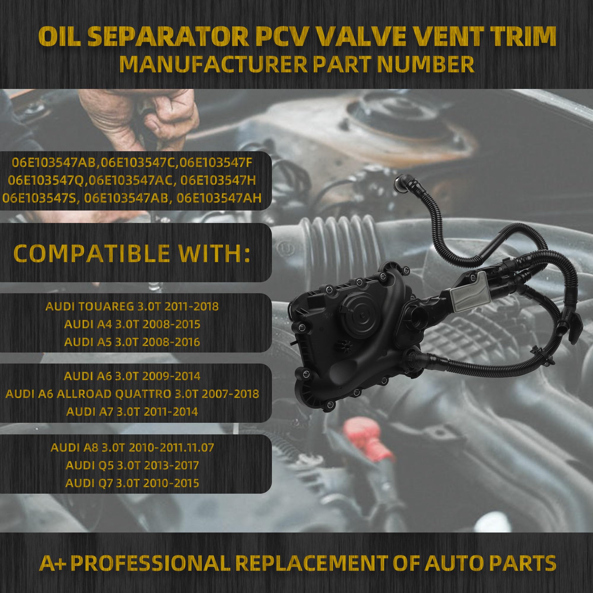 【Comptiable With】PCV Valve Vent Trim Compatible with Audi Touareg 3.0T 2011-2018; Audi A4 3.0T 2008-2015; Audi A5 3.0T2008-2016; Audi A6 3.0T 2009-2014; Audi A6 Allroad quattro 3.0T 2007-2018; Audi A7 3.0T 2011-2014; Audi A8 3.0T 2010-2011.11.07; Audi Q5 3.0T 2013-2017; Audi Q7 3.0T 2010-2015.