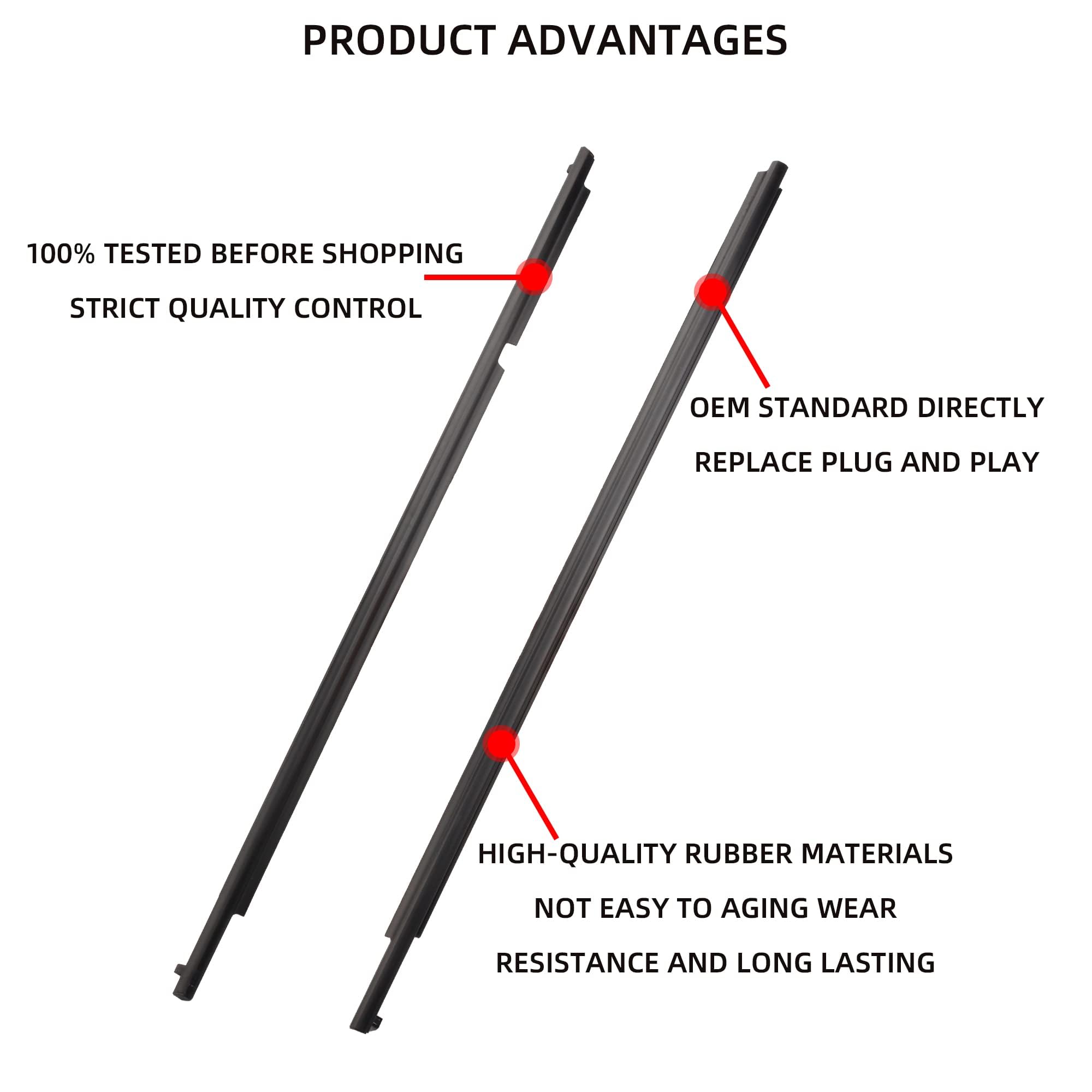 【Function】 When the windows move up and down, the window trim seal can wipe the window very well. The window trim can prevent water, air and dust from entering the vehicle. Our window seal also can be an exterior ornamental component that gives the vehicle a nice look.