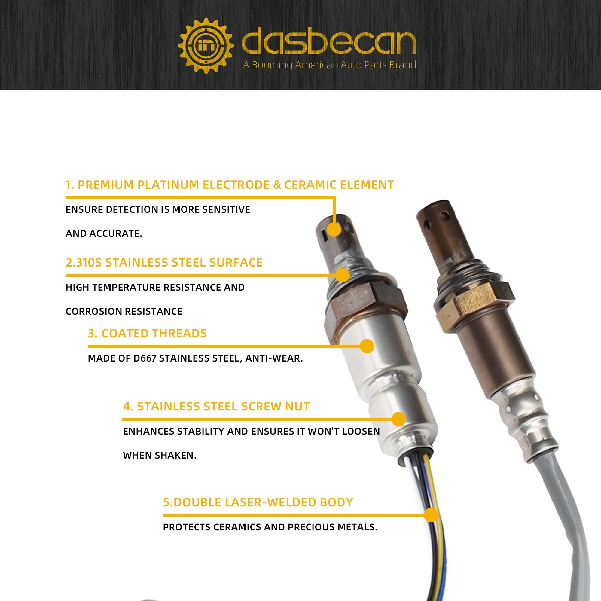 Features: Made of materials that are resistant to high temperatures and corrosion, ensuring stable performance in harsh environments. Real time and accurate measurement of vehicle emissions oxygen content helps achieve the optimal fuel mix ratio, thereby optimizing fuel efficiency.