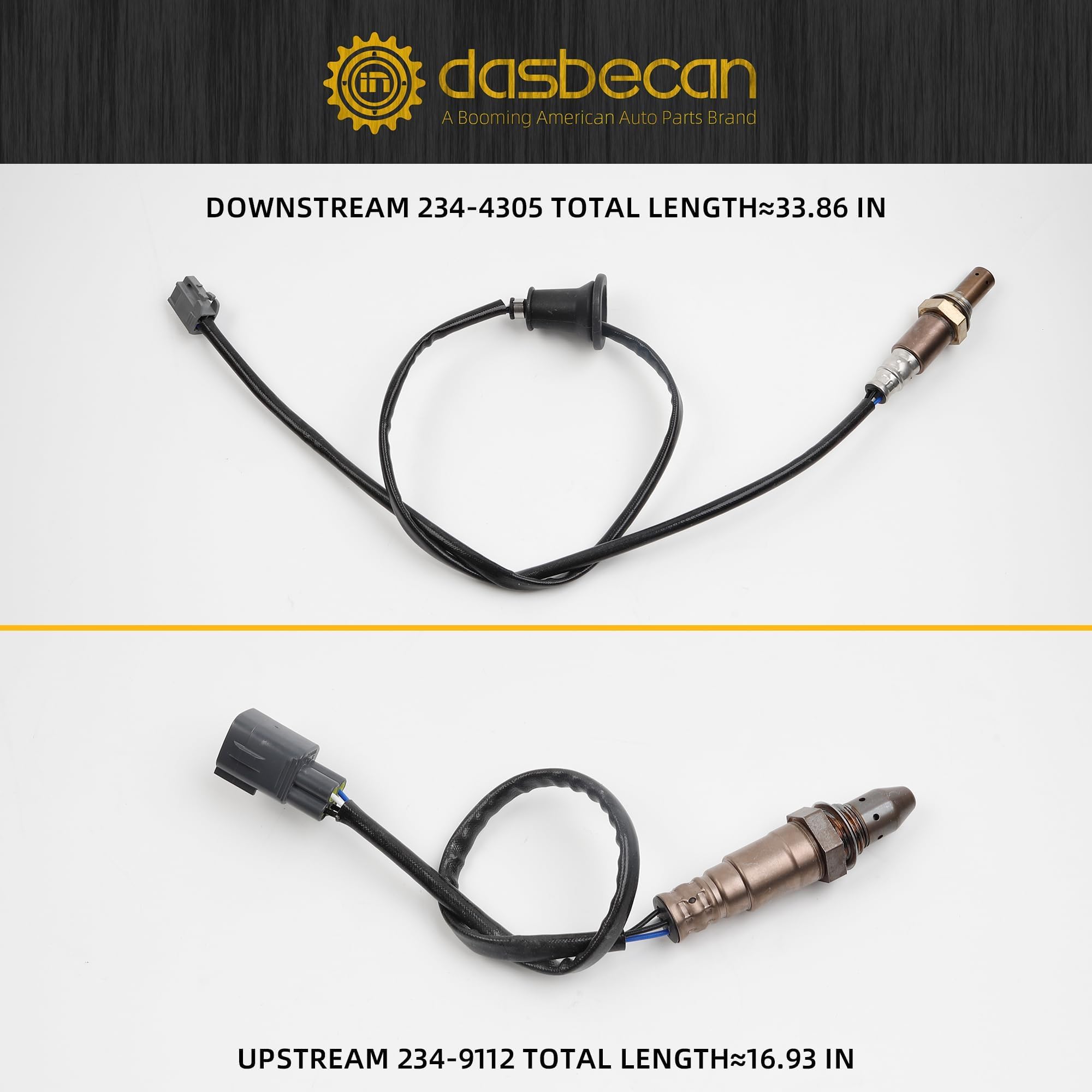 Parameter: Total length: 234-9112 (up) 16.93 in, 234-4305 (down) 33.86 in; Wire Count: 4-Wire; 4pin/wires; Positon: Upstream & downstream.