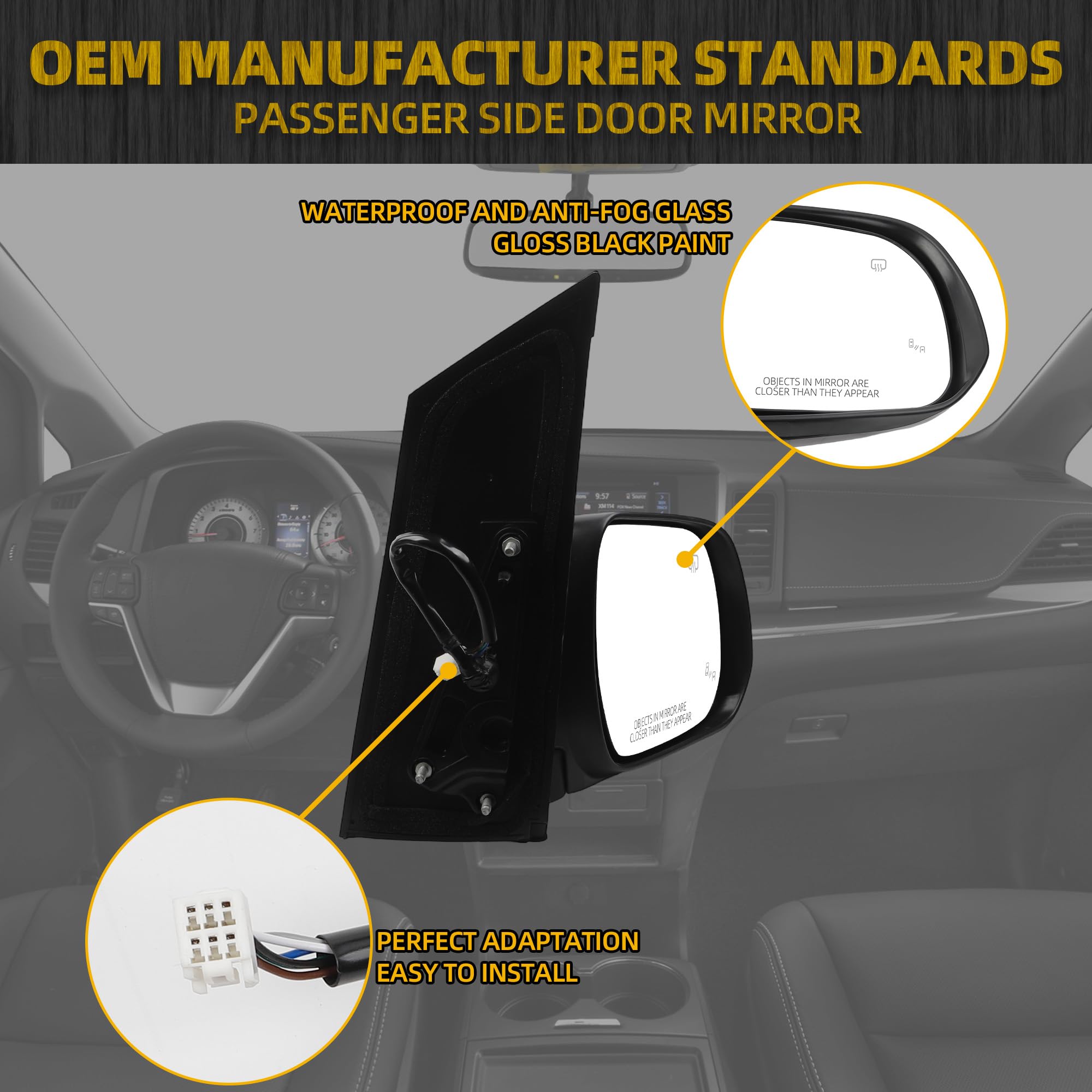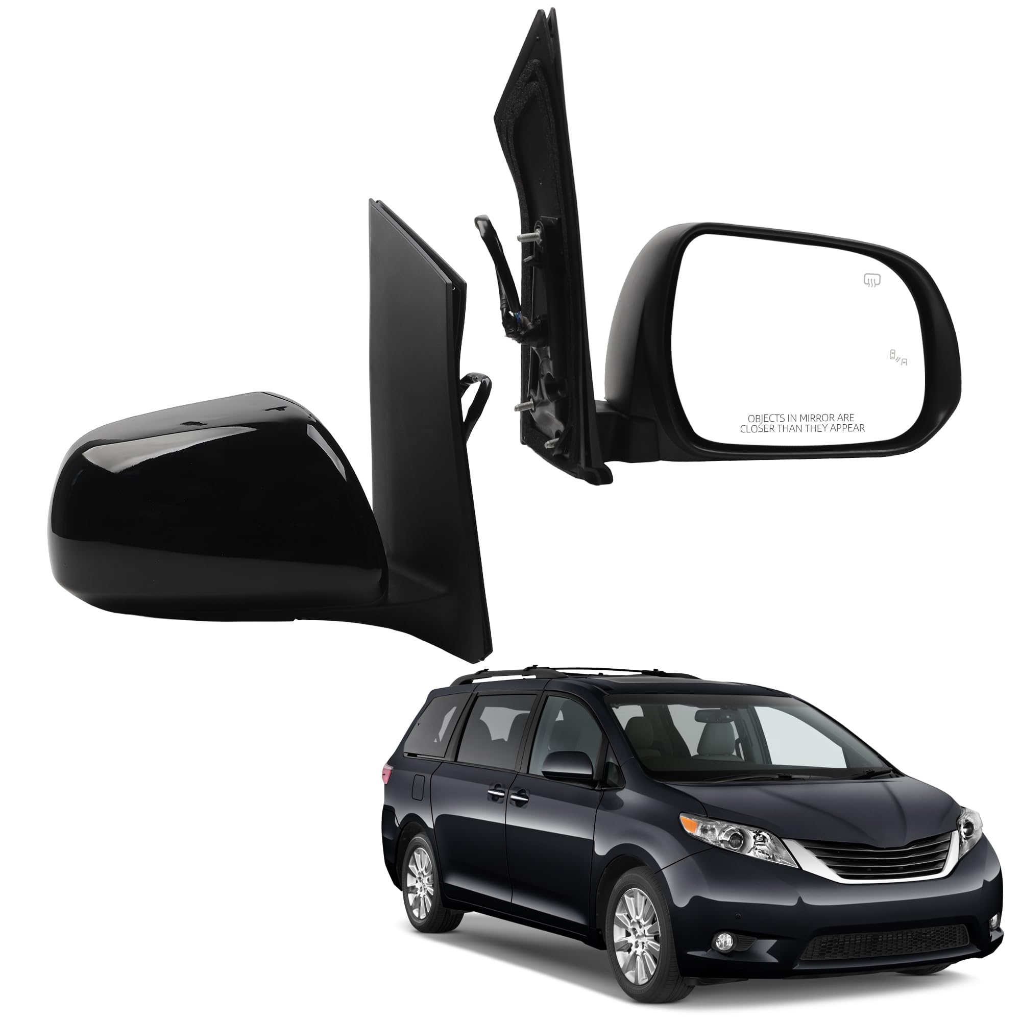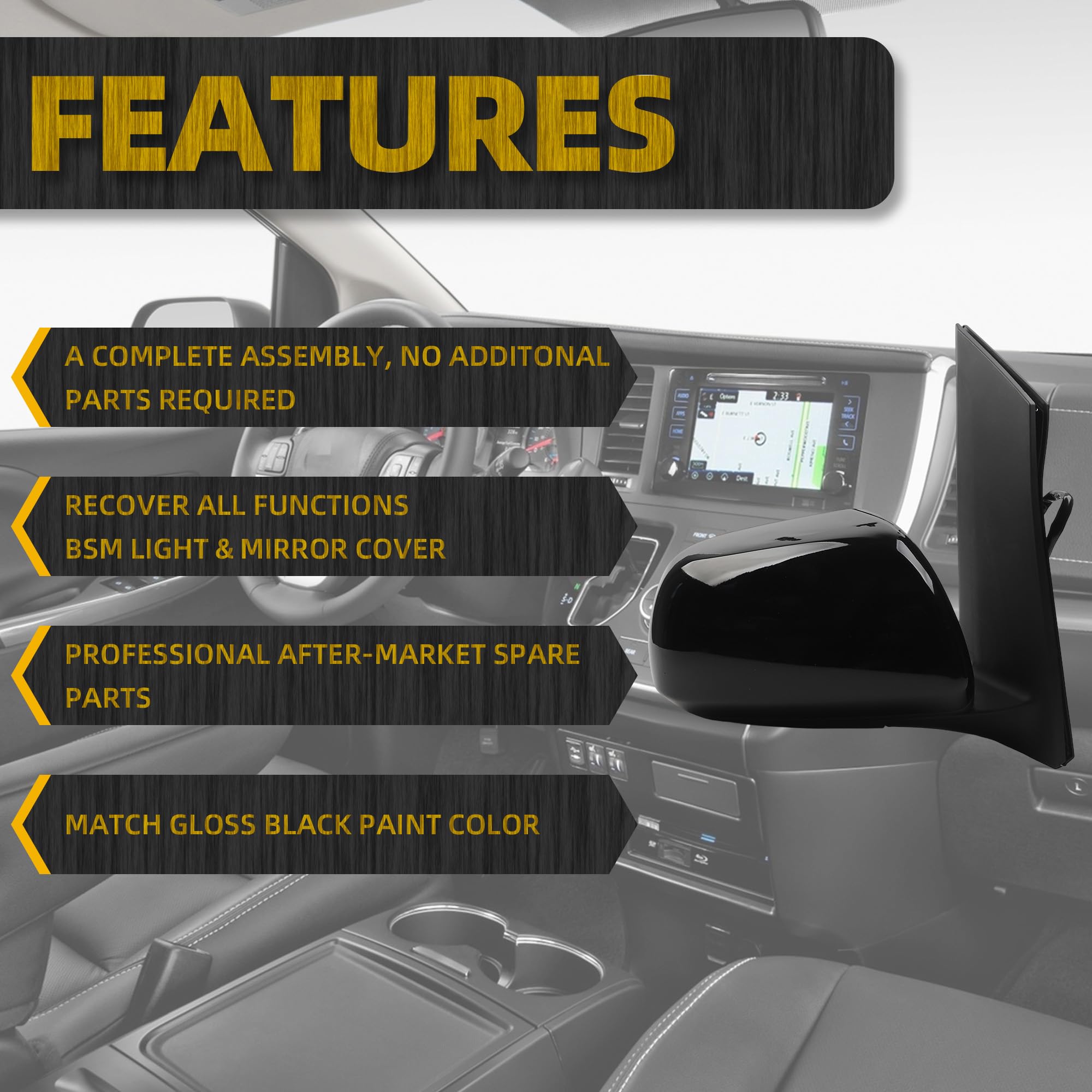 【Comaptible With】The Passenger Side Mirror Compatible With 2013 2014 2015 2016 2017 Toyota Sienna Gloss Black Cover(6pins)