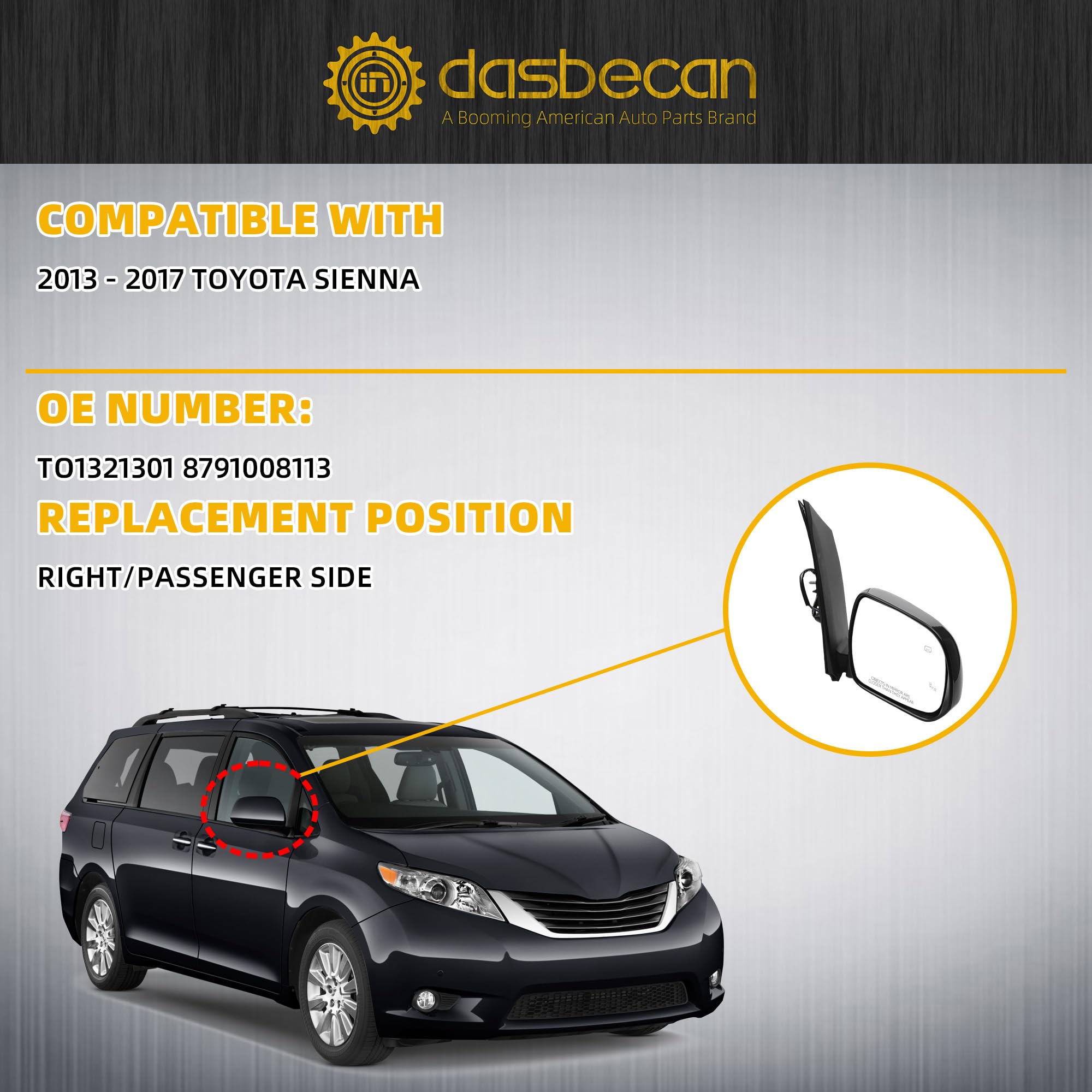 【Part Number】The Part Number Of Right Rear view Mirror Is TO1321301 8791008113.Please Confirm Your Vehicle Model And Part Number Before Purchase