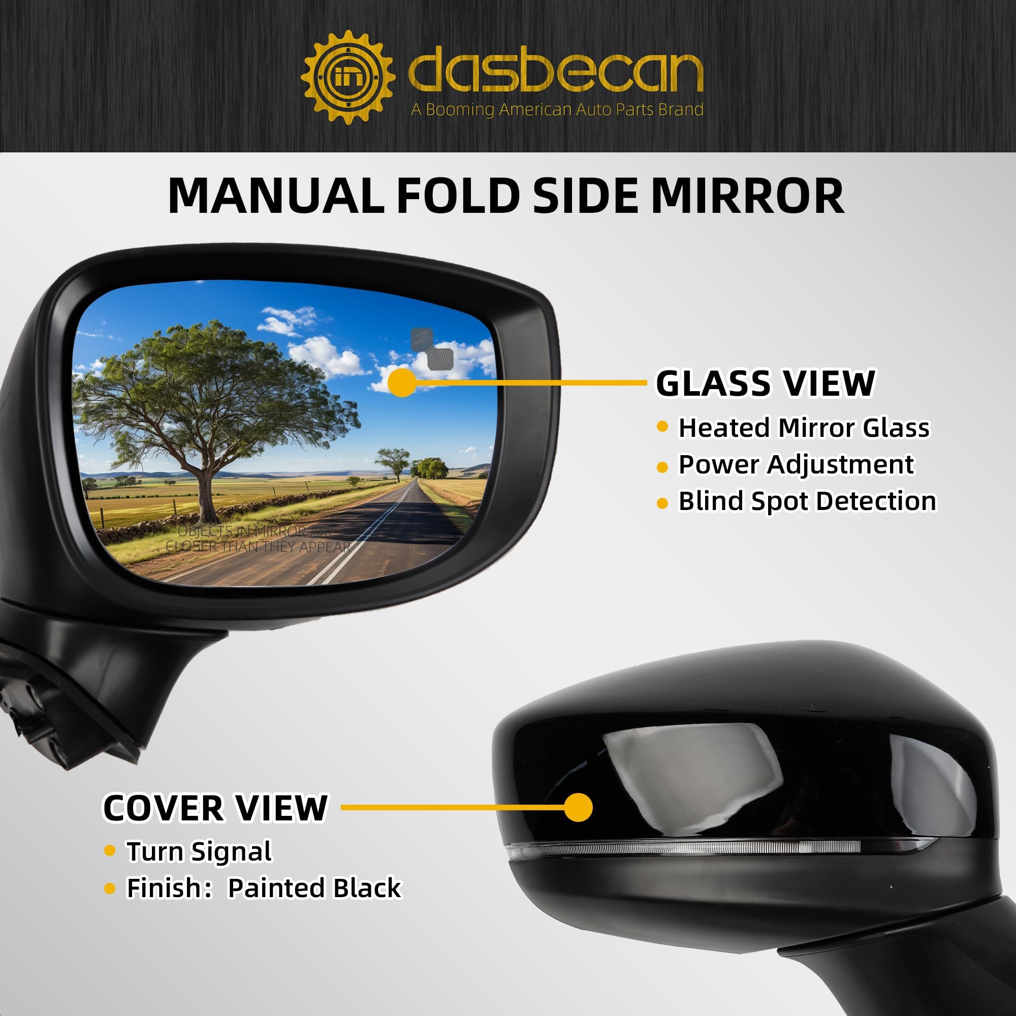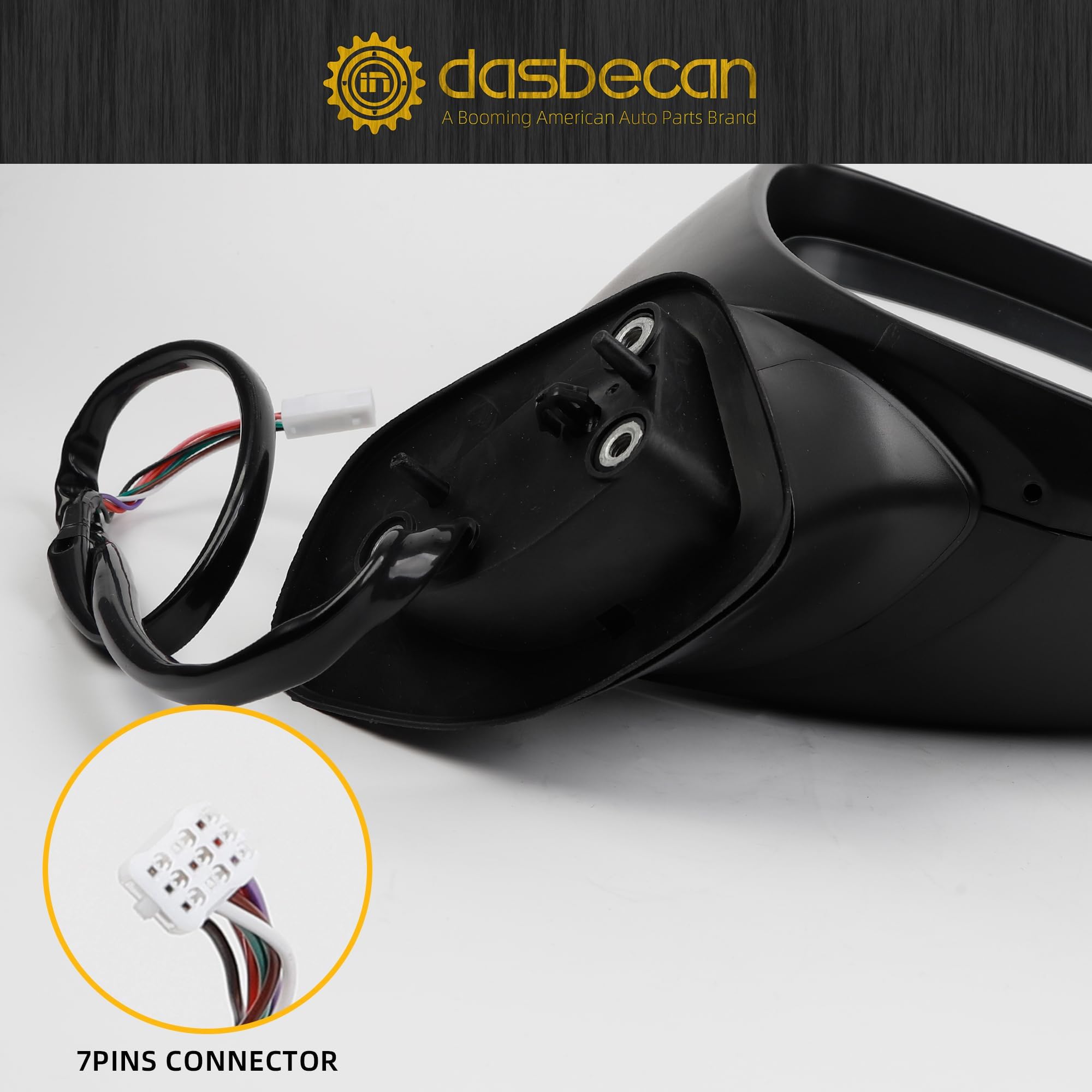 Specifications: Function(Heated丨Power Glass丨Manual Folding丨w/Turn Signal Light丨Blind Spot Detection) ; Position: Front Right (Passenger Side Mirror) ; Color: Paintable Black ; Number of interfaces: 7 Wires/Pins.