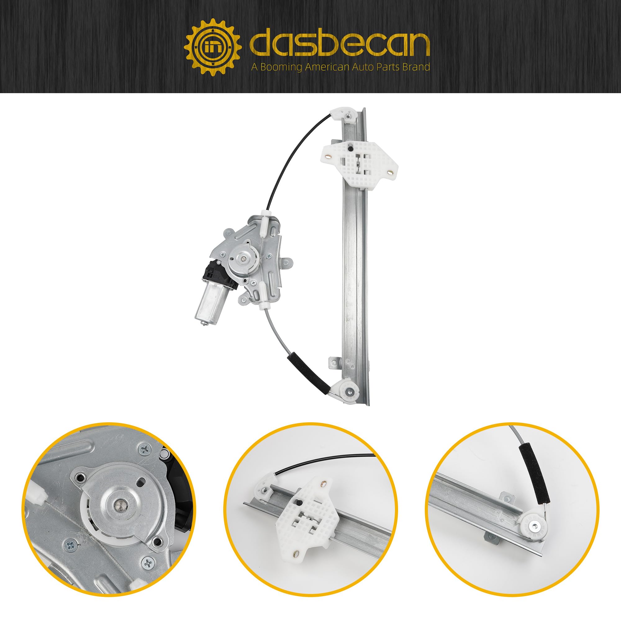 Feature: High-strength steel cable ensures smooth and controlled movement of the window glass, stable construction, scratch and impact resistant, high-quality pulley/drum gear, wear and corrosion resistant, with good load-bearing capacity.