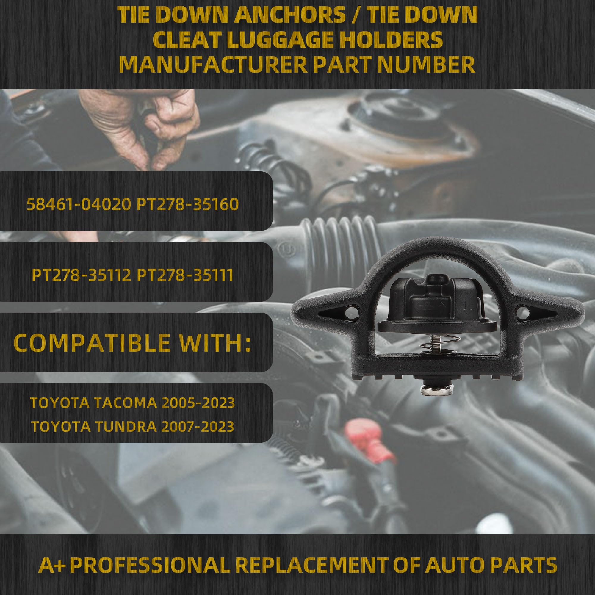 【Part Number Replacement】PT278-0C010 ;PT278-35111 ;PT278-35160 ;PT278-35112 .each fully adjustable tie down bed cleat can be slided along the bed rail system by using a spring-loaded, can be placed it anywhere.
