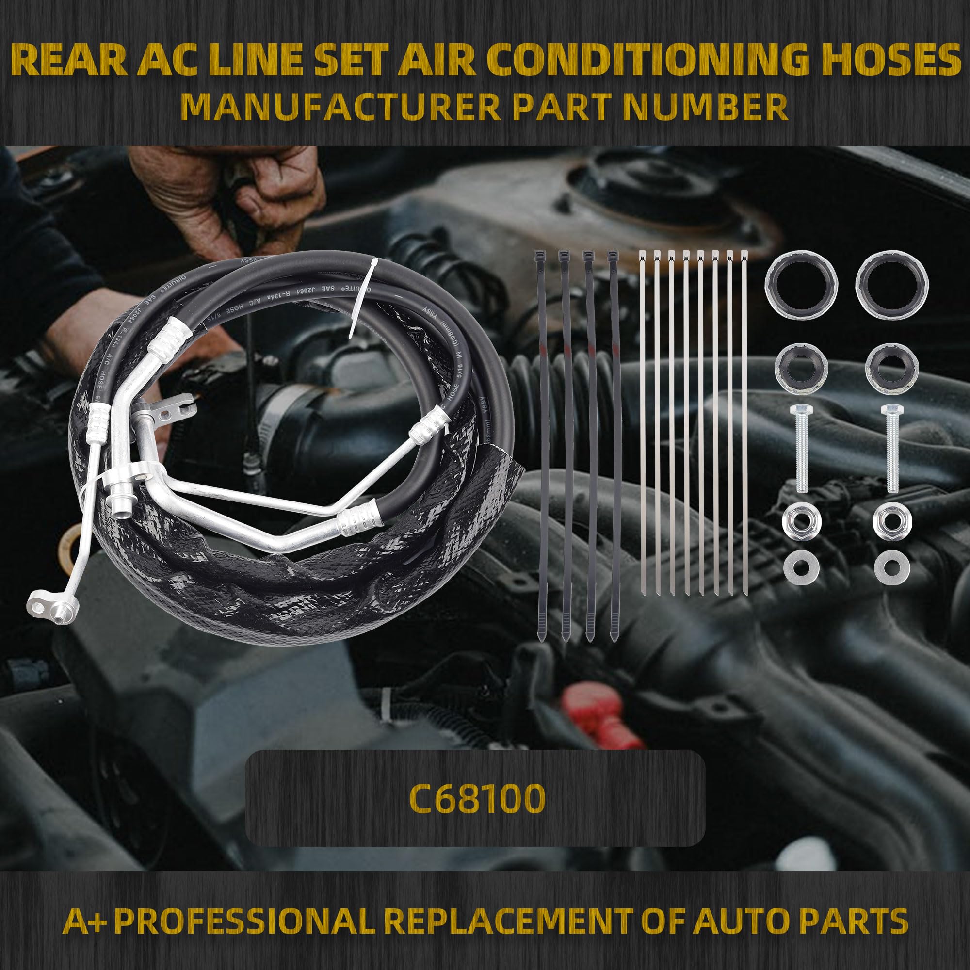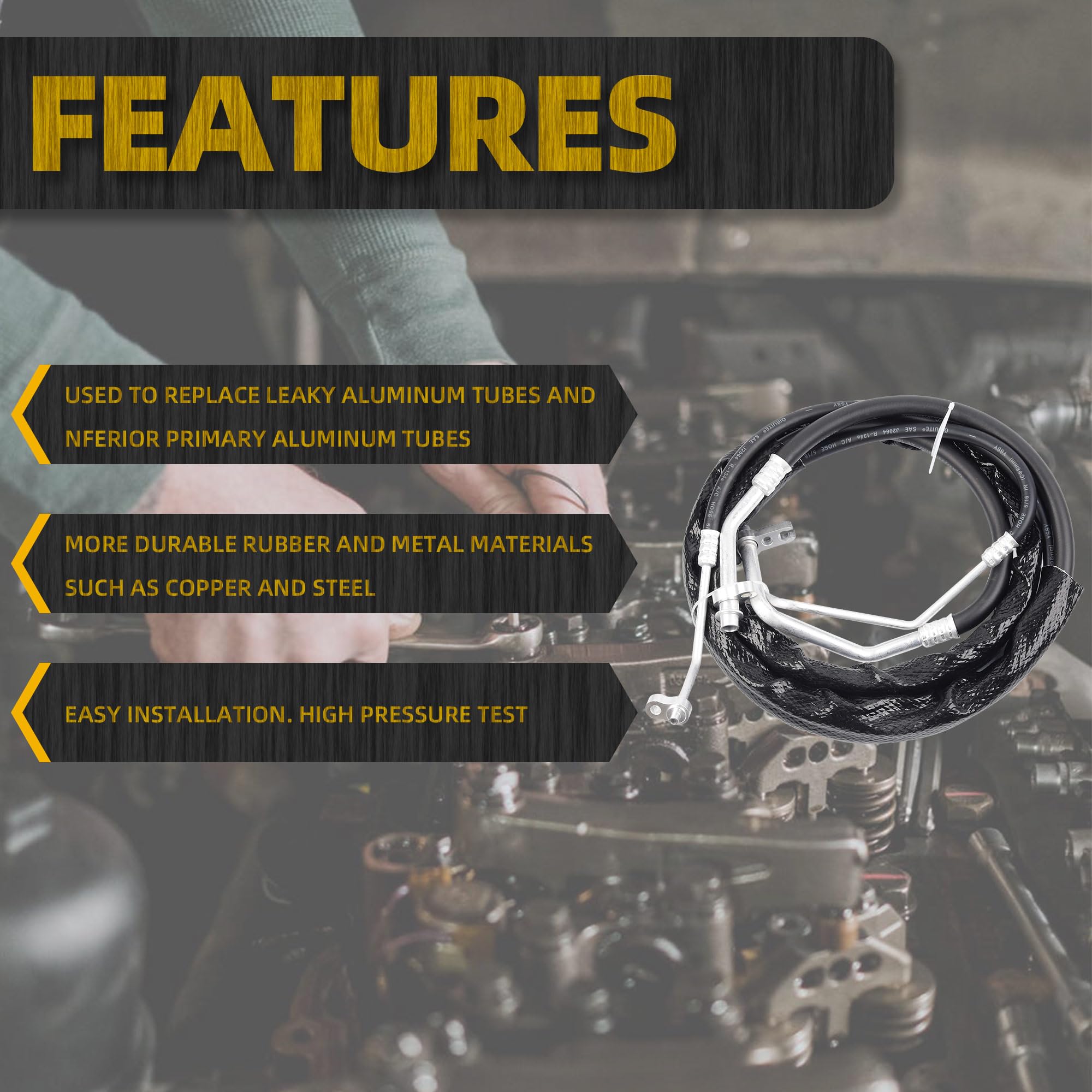 【Description】Over time, the hose may deteriorate or leak due to factors such as aging, wear, or external component damage. When this situation occurs, it is necessary to replace the affected hose or the entire hose kit to ensure the normal operation of the air conditioning system.