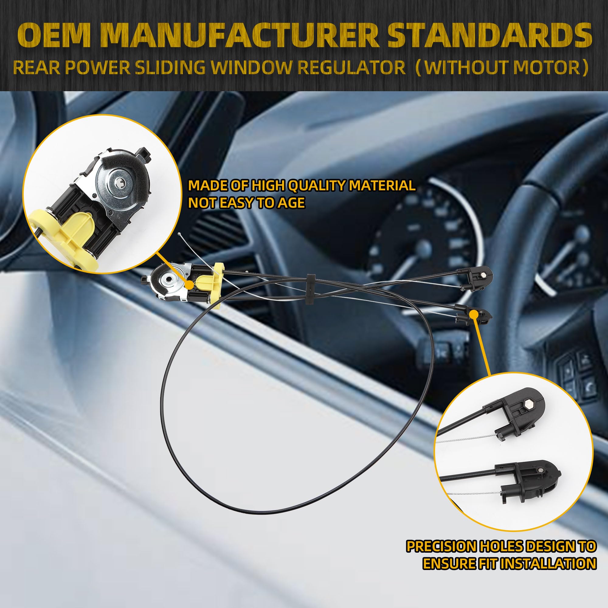 [Features]: This Rear Power Sliding Window Regulator Features High Strength Steel Rails Ensuring Seamless Integration With The Original Track Interfaces. It Completely Resolves Issues Such As Window Jamming Or Rattling Noises.