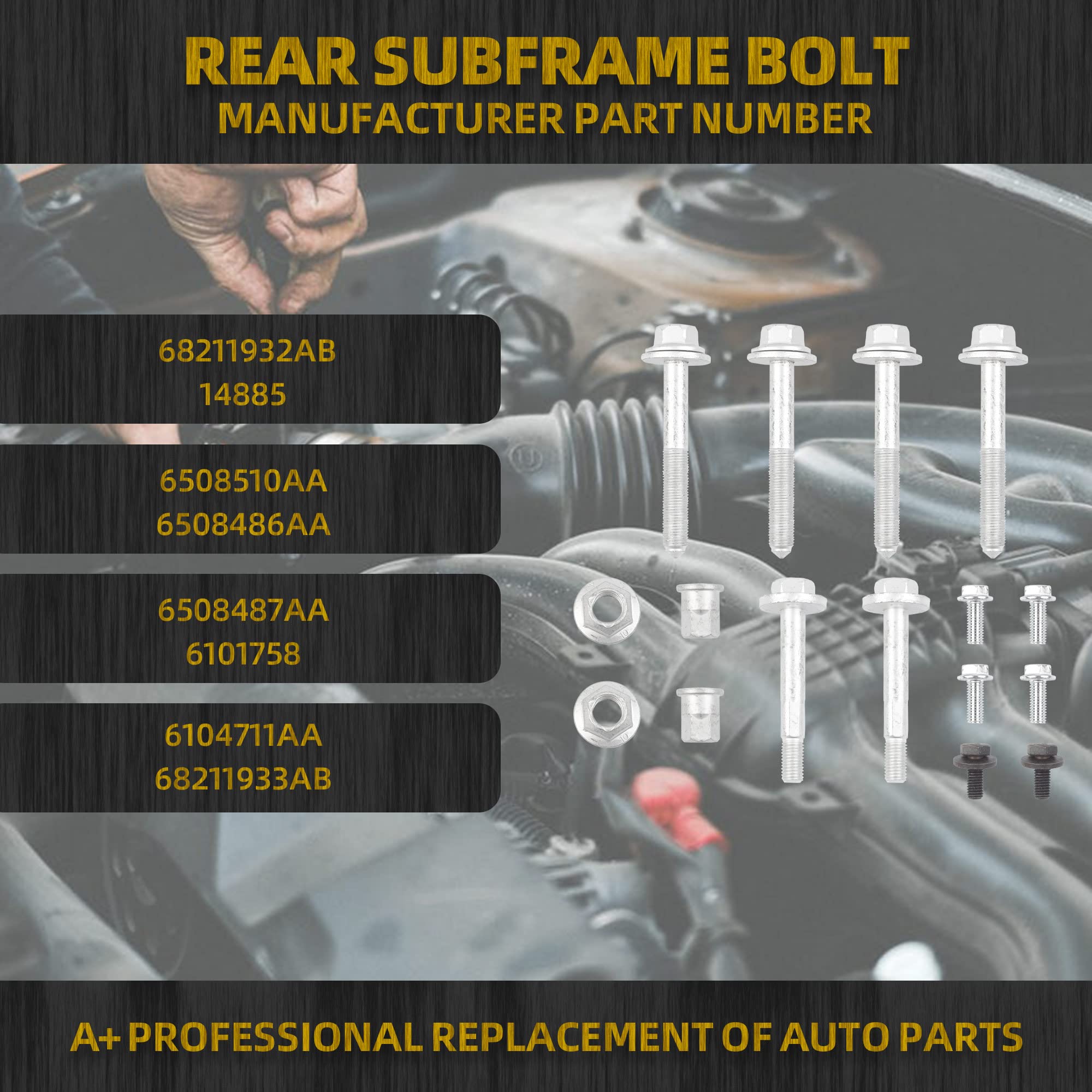【High Quality】The Part Of Rear Subframe Bolt Kit Is Made Of High-Quality Raw Materials And Advanced Technology,Undergo Strict Testing Before Leaving The Factory,Excellent Performance And Reliable Quality. All parts have passed ISO/TS16949 certification and are provided by high-quality manufacturers from around the world
