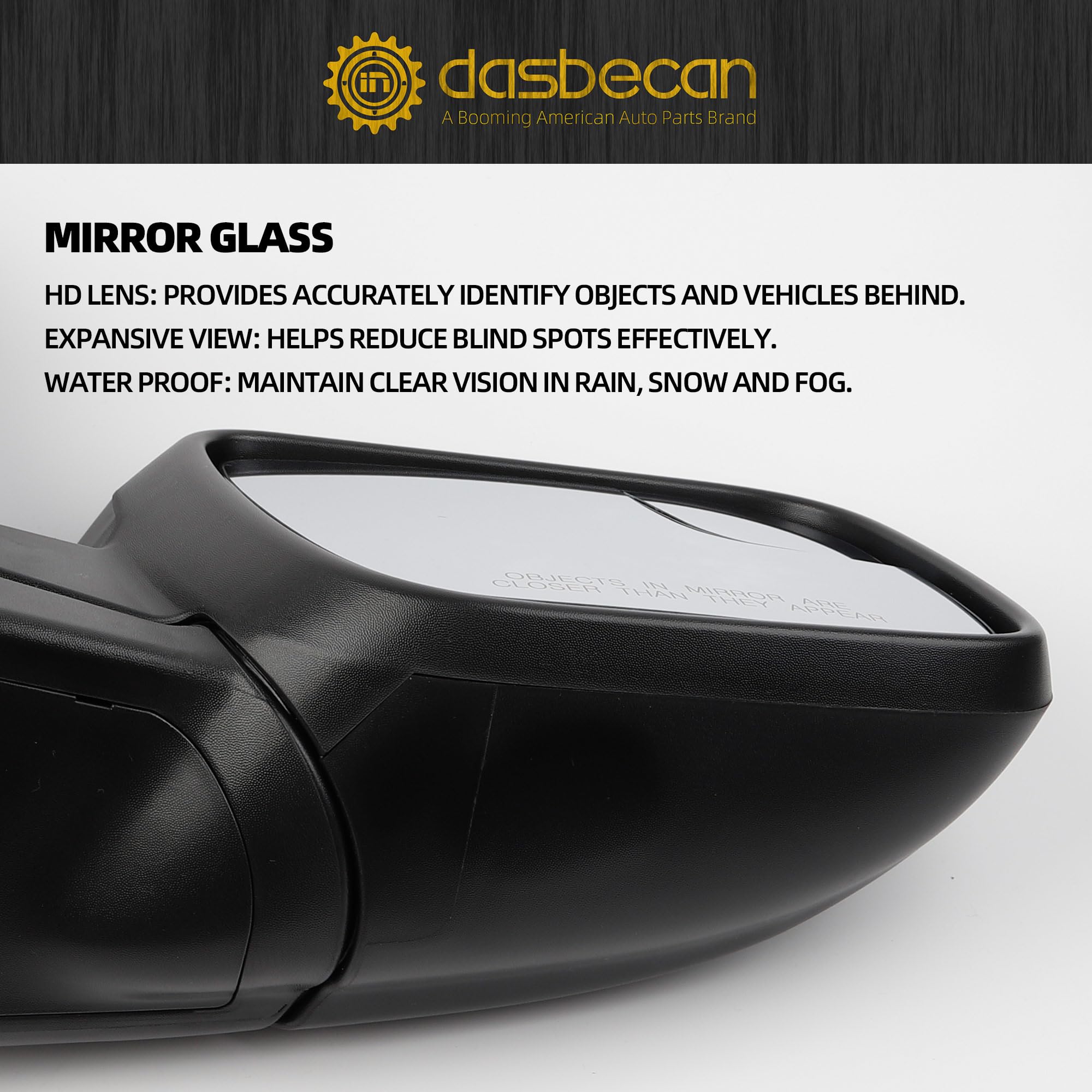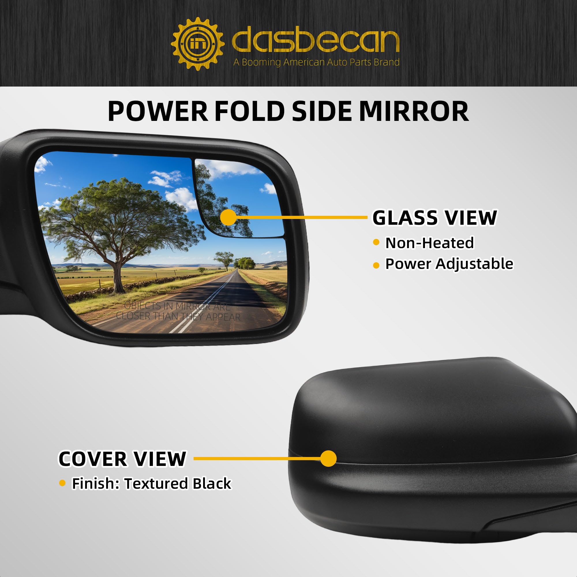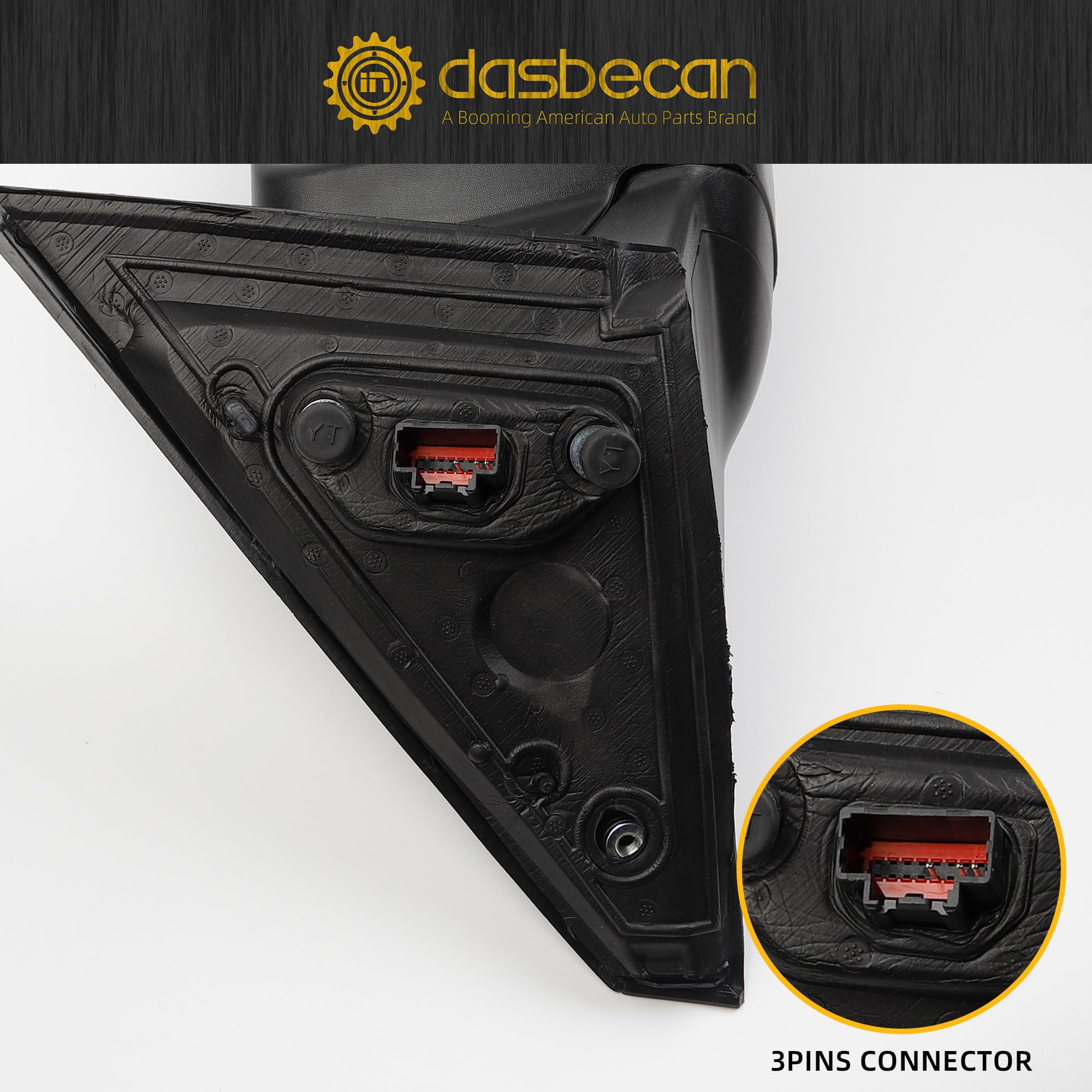 Specifications: Right Passenger Side Exterior Mirror, Power Glass Adjustment, Manual Folding, Paint to Match Black Cover, 3 Pins Connector.
