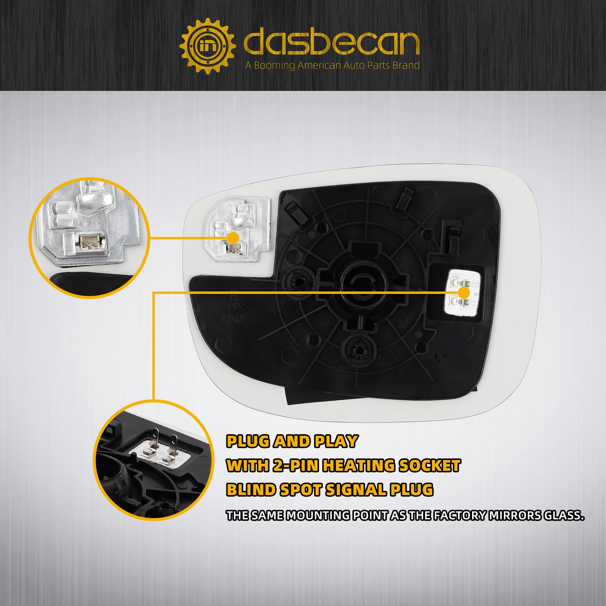 Specifications: Front Right Passenger Side, Convex Glass, Power Glass Adjustment, with Heated, with Blind Spot Detection, with Backing Plate.