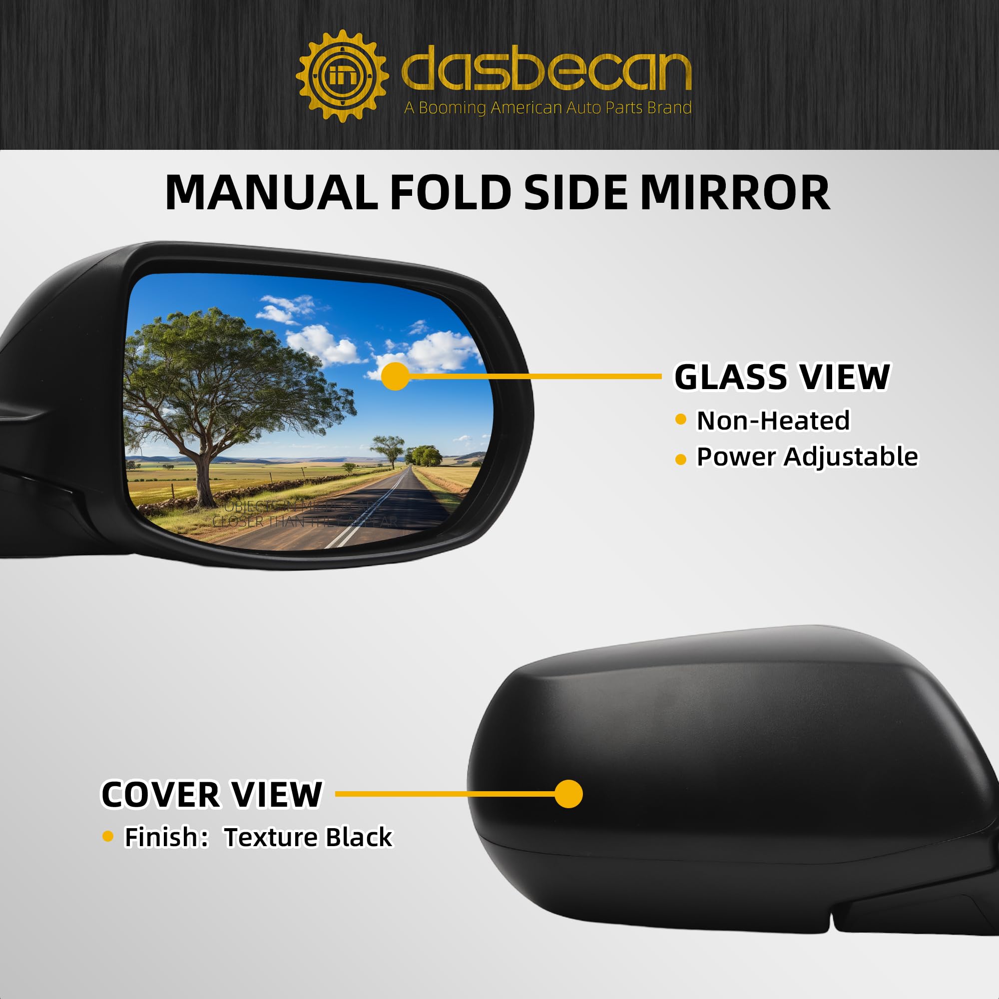 Specifications: Non-heated; Smooth Black; Flat Glass; Manual fold