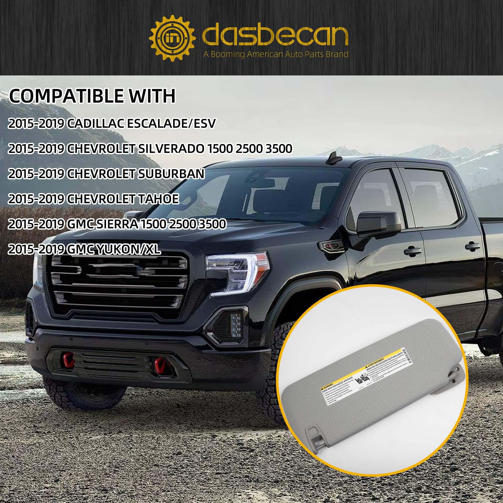 【Fitment】The Sun Visor Compatible with 2015-2019 Cadillac Escalade/ESV, 2015-2019 Chevrolet Silverado 1500 2500 3500, 2015-2019 Chevrolet Suburban, 2015-2019 Chevrolet Tahoe, 2015-2019 GMC Sierra 1500 2500 3500, 2015-2019 GMC Yukon/XL