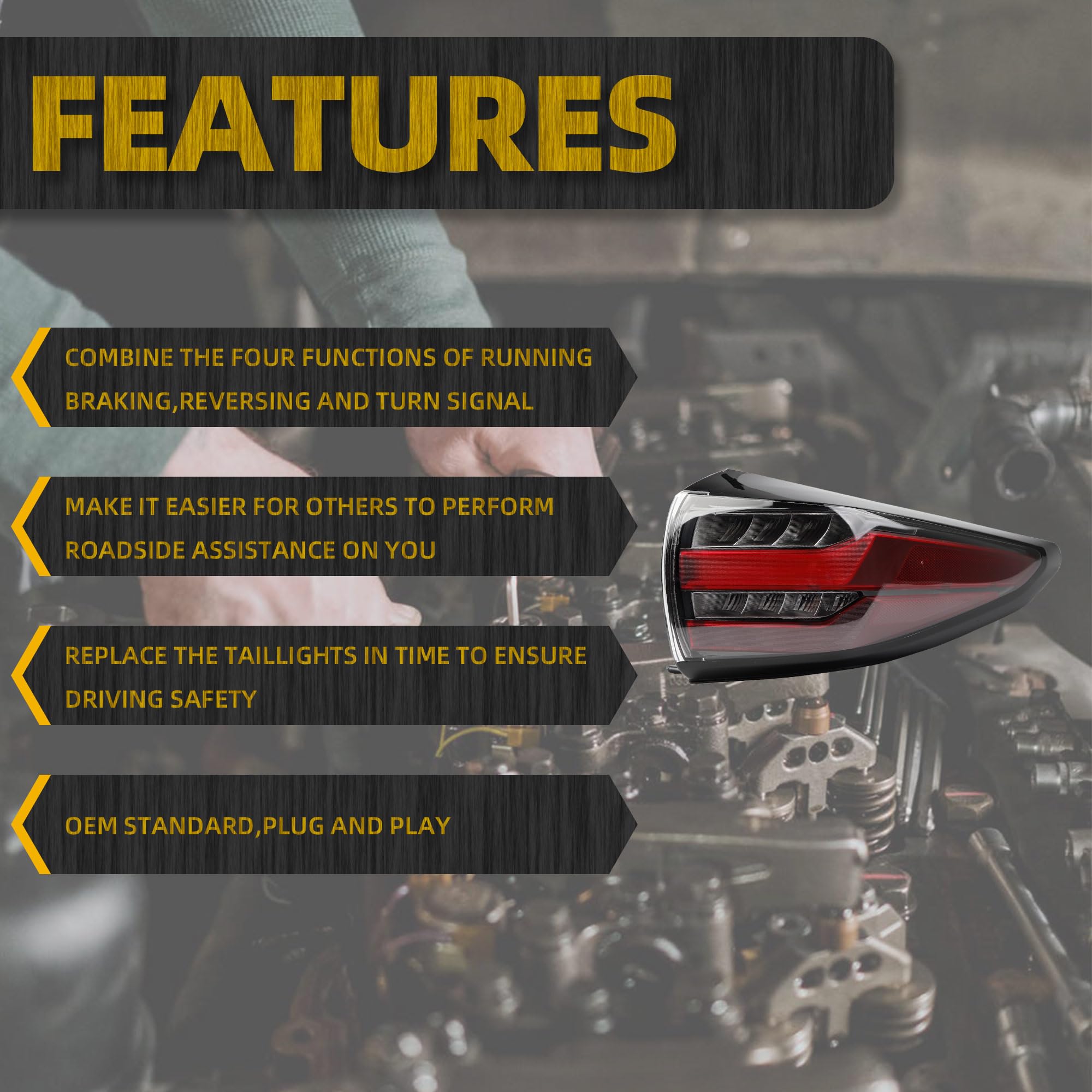 [Feature]: The Tail light is Made By high quality plastic, it is not easily damaged. Specifically OEM design. There is no need for cutting or modification. It can directly replace the original factory tail lights, retaining the original vehicle's wiring interfaces, and the installation can be completed within a few minutes.