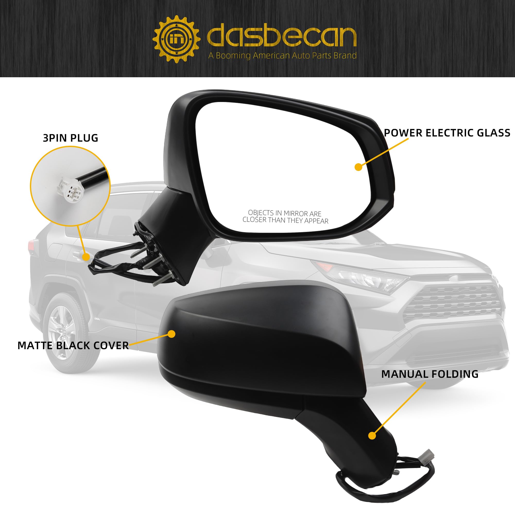 【Note】The Color Of The Side Mirror Is Matte Black, It Fits 3Pins Toyota Rav4 Right Mirror. Match US-Version, No Needs For Other Accessories, Easy Installation