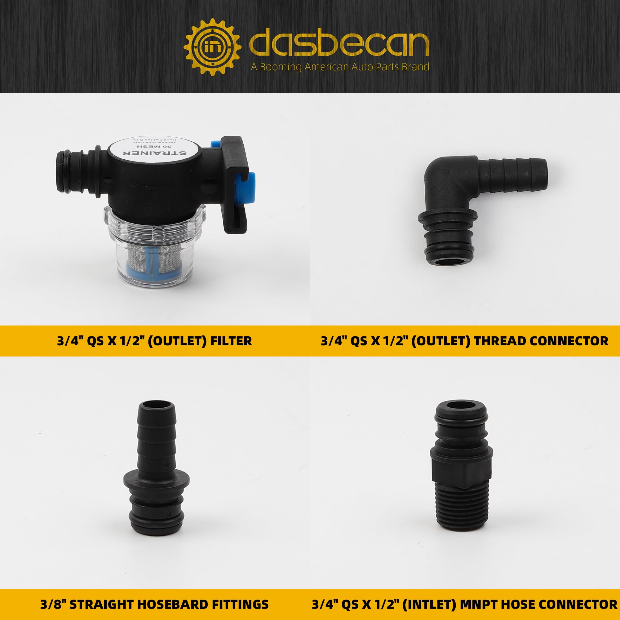 【Compatible With】The Pump fits 1/2'' NPT pipe or hose. Equipped with 2*1/2'' Barb and 2*1/2'' MNPT adapters. suit for most RV