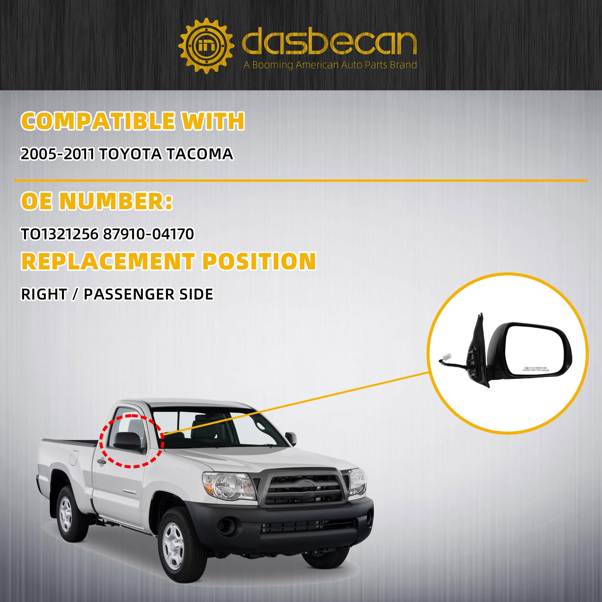 【Comaptible With】The Right Side View Mirror Compatible With 2005 2006 2007 2008 2009 2010 2011 Toyota Tacoma(3pins)