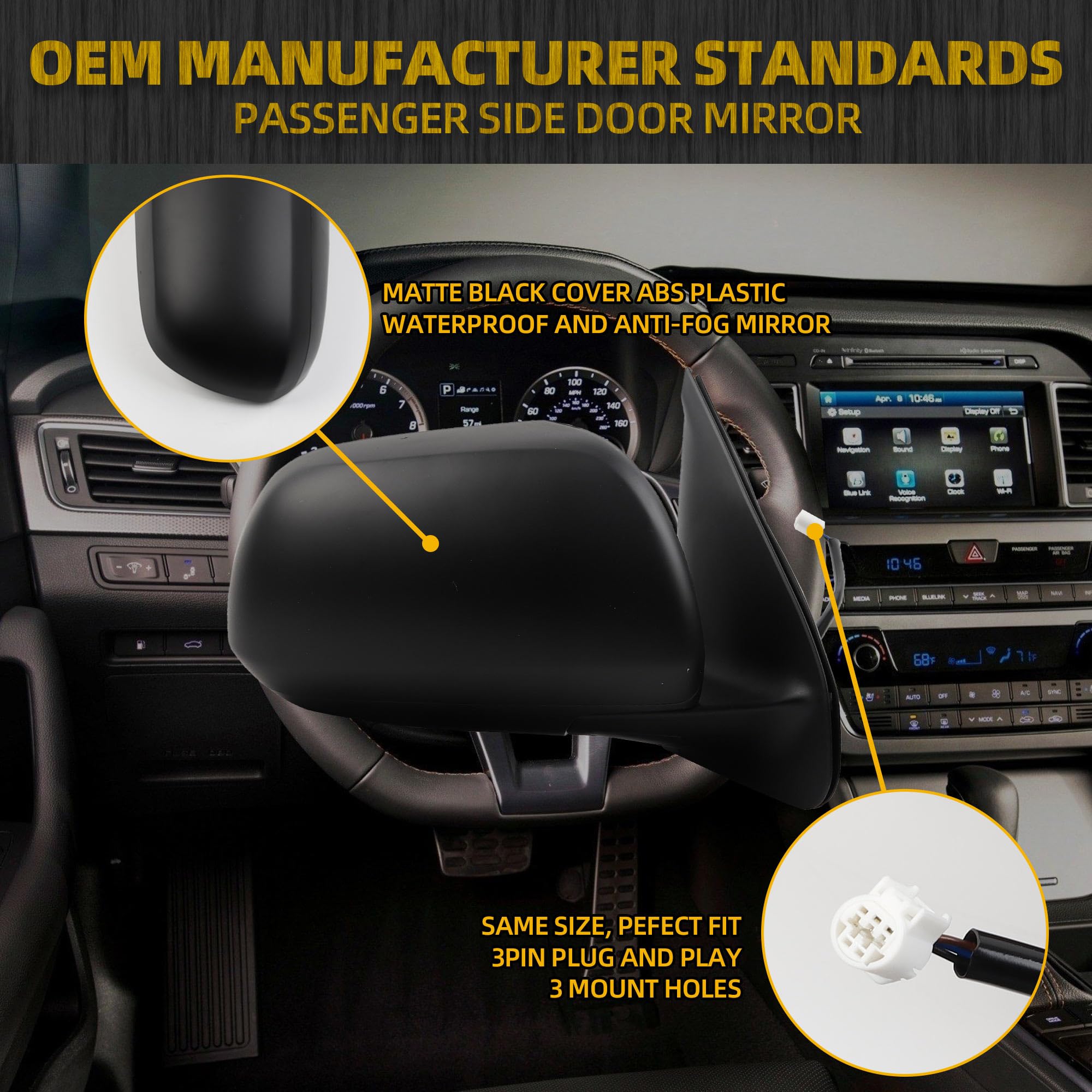 【Function】The Right Rearview Side Mirror Equipped Power Adjustment And Manual Folding Functions. Without Heated Or Turn Signal. Matte Black Cover, Match car body's paint