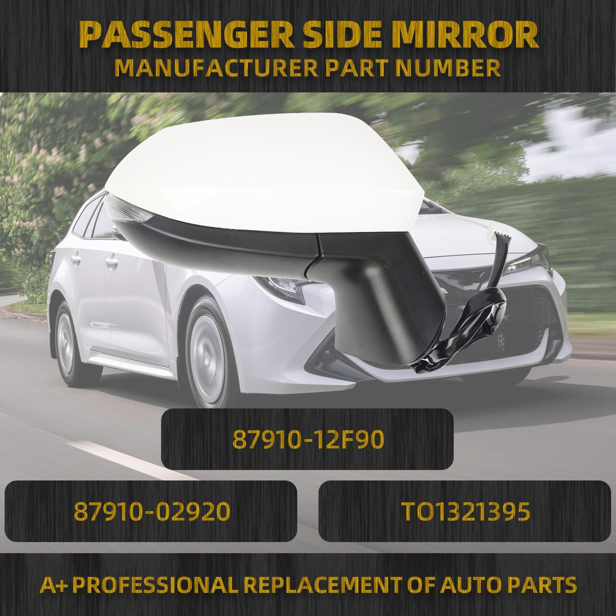 [Specifications] Position: Front Right Passenger Side; Color: White ( Paint to Match ) ; Plug Configuration: 7 Holes 7 Pins. Fuction: Manual Folding, power Adjustment, With BSD (Blind Spot Detection), With Signal, With Heating.