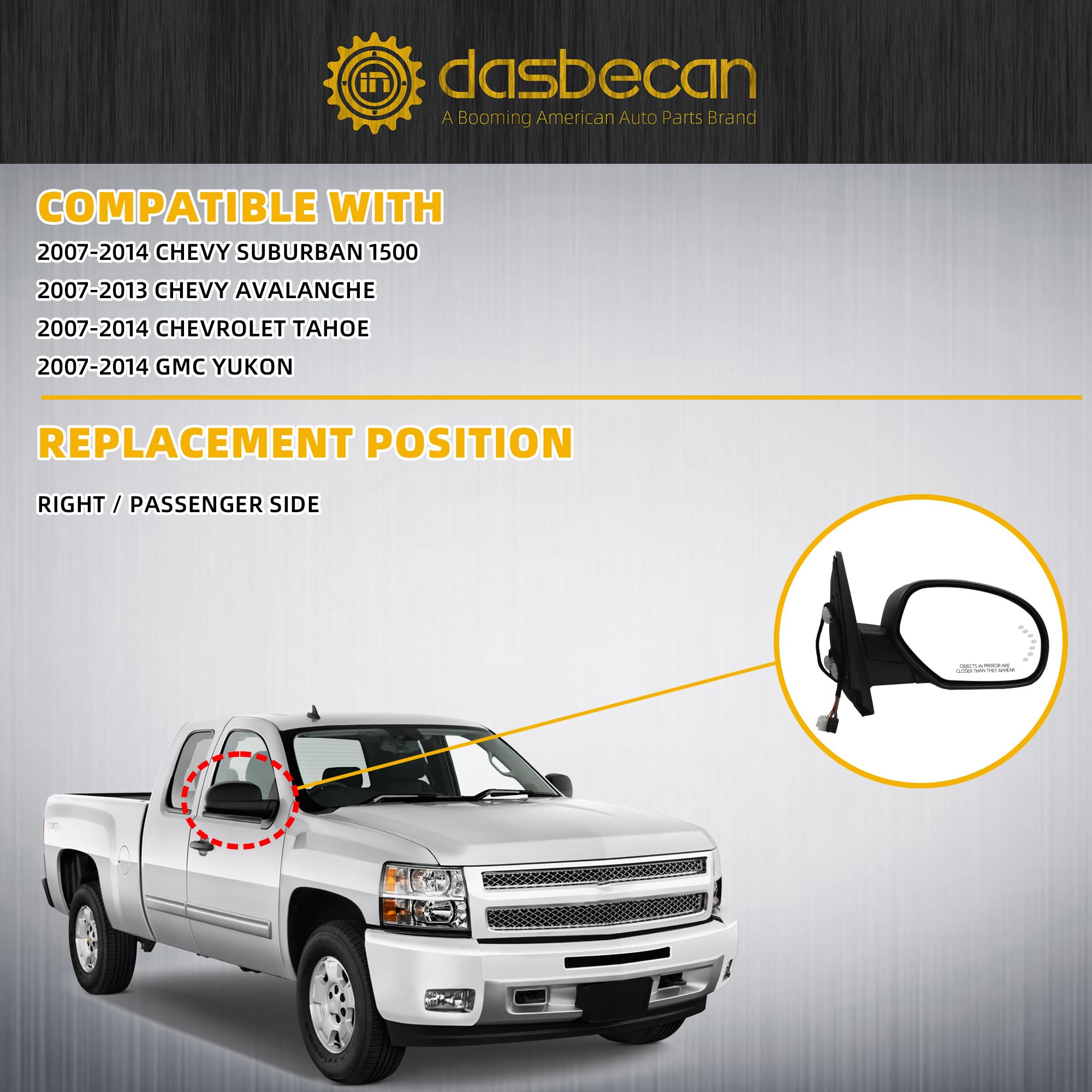 【Vehicle Specific Fit】 The Passenger Side Mirror Compatible with 2007-2013 Chevy Silverado 1500, Silverado 2500 HD, Silverado 3500 HD, Avalanche, Suburban 1500; 2007-2014 Chevrolet Tahoe