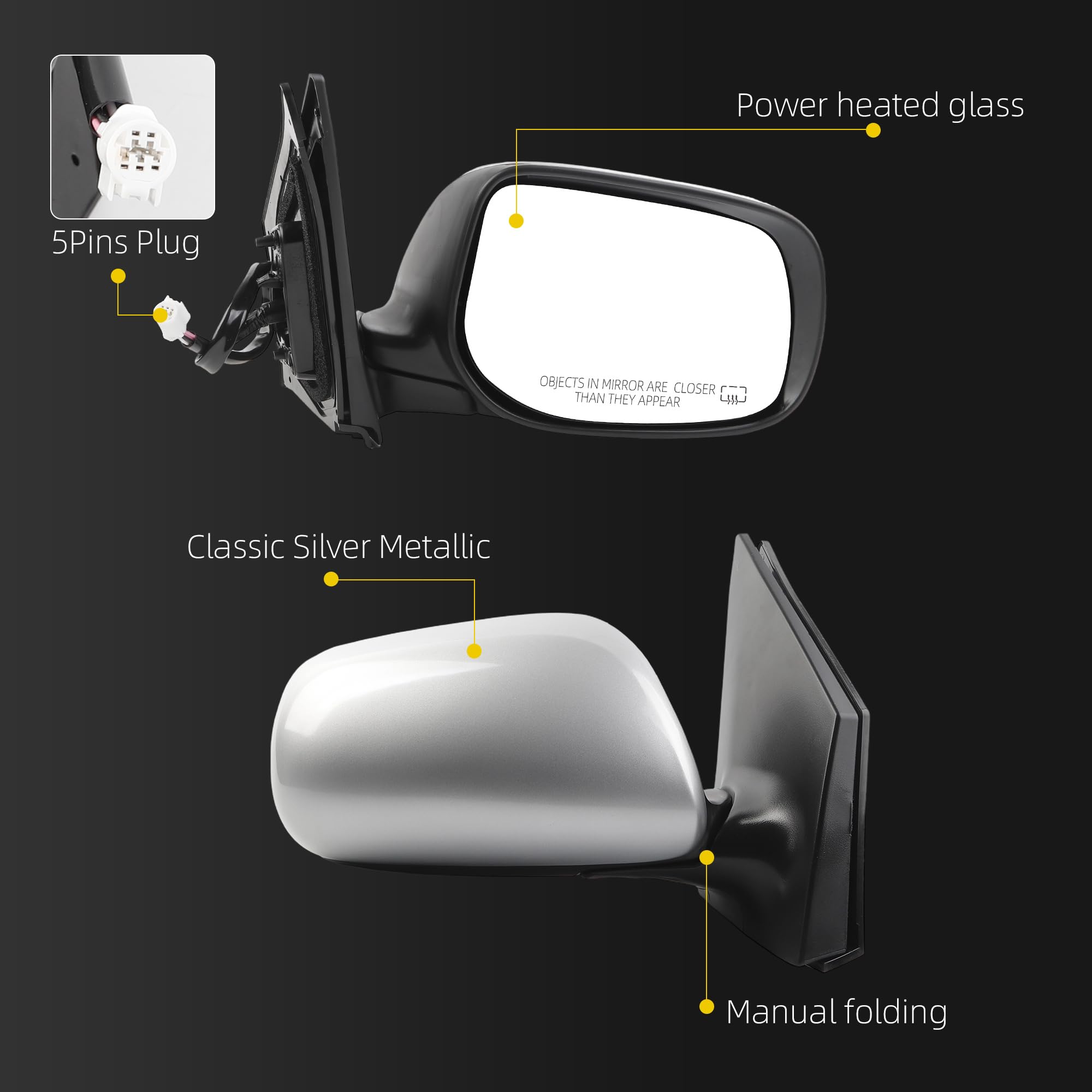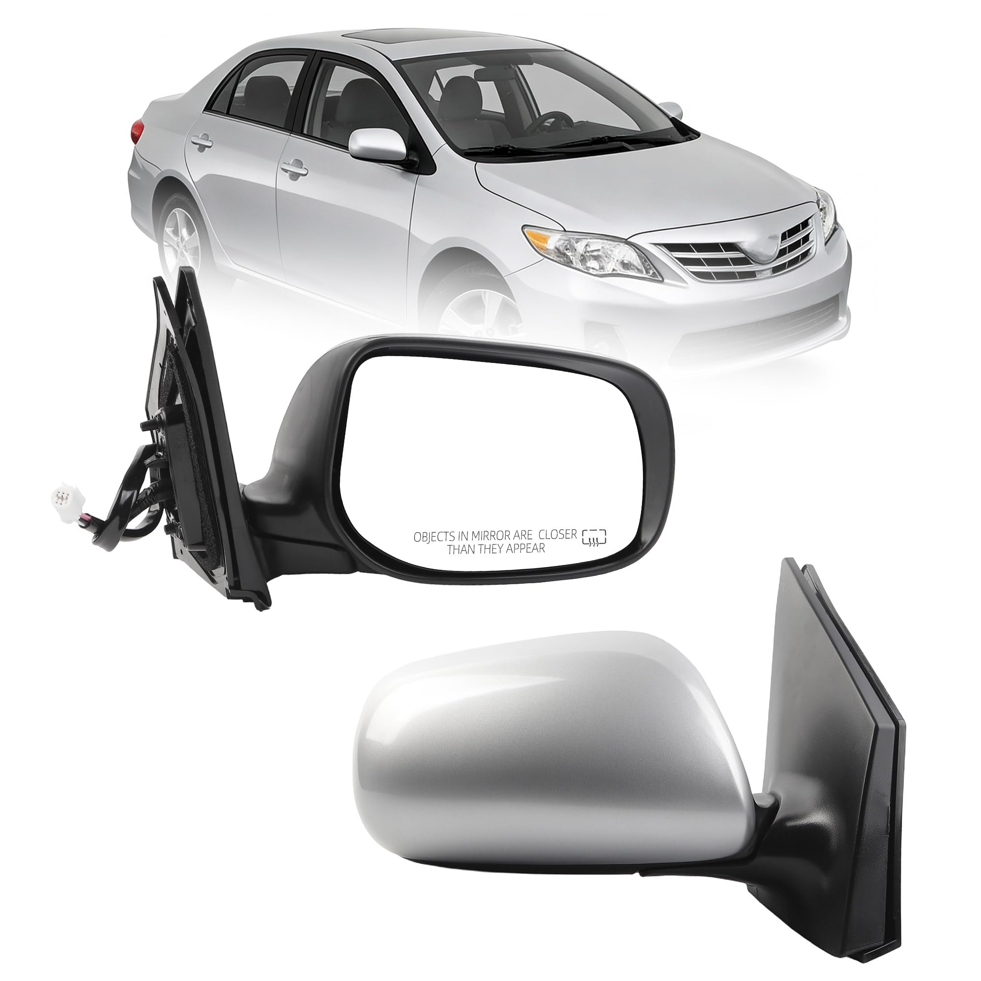 【Excellent Performance 】This Silver Corolla Rearview Mirror is Equipped with Power Heated Glass and Manual Folding Functions, and Its Mirror Surface is A Convex Mirror, Which Can Broaden Your Vision and Enhance Driving Safety While Driving