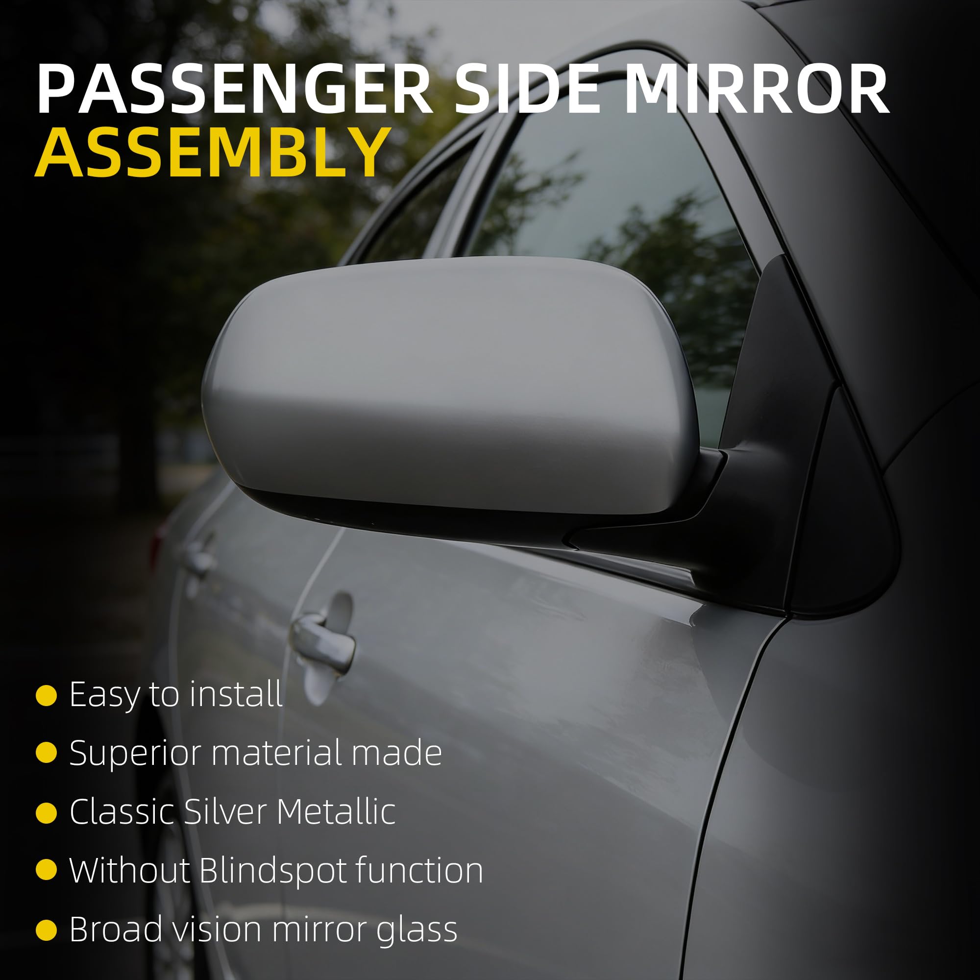【Superior Material 】The Passenger Outside Mirror Assembly Has Heat-Resistant Glass and ABS Classic Silver Metaill Plastic Cover, Allowing You To Perfectly Cope With Harsh Environments And Enhance Your Driving Experience And Safety