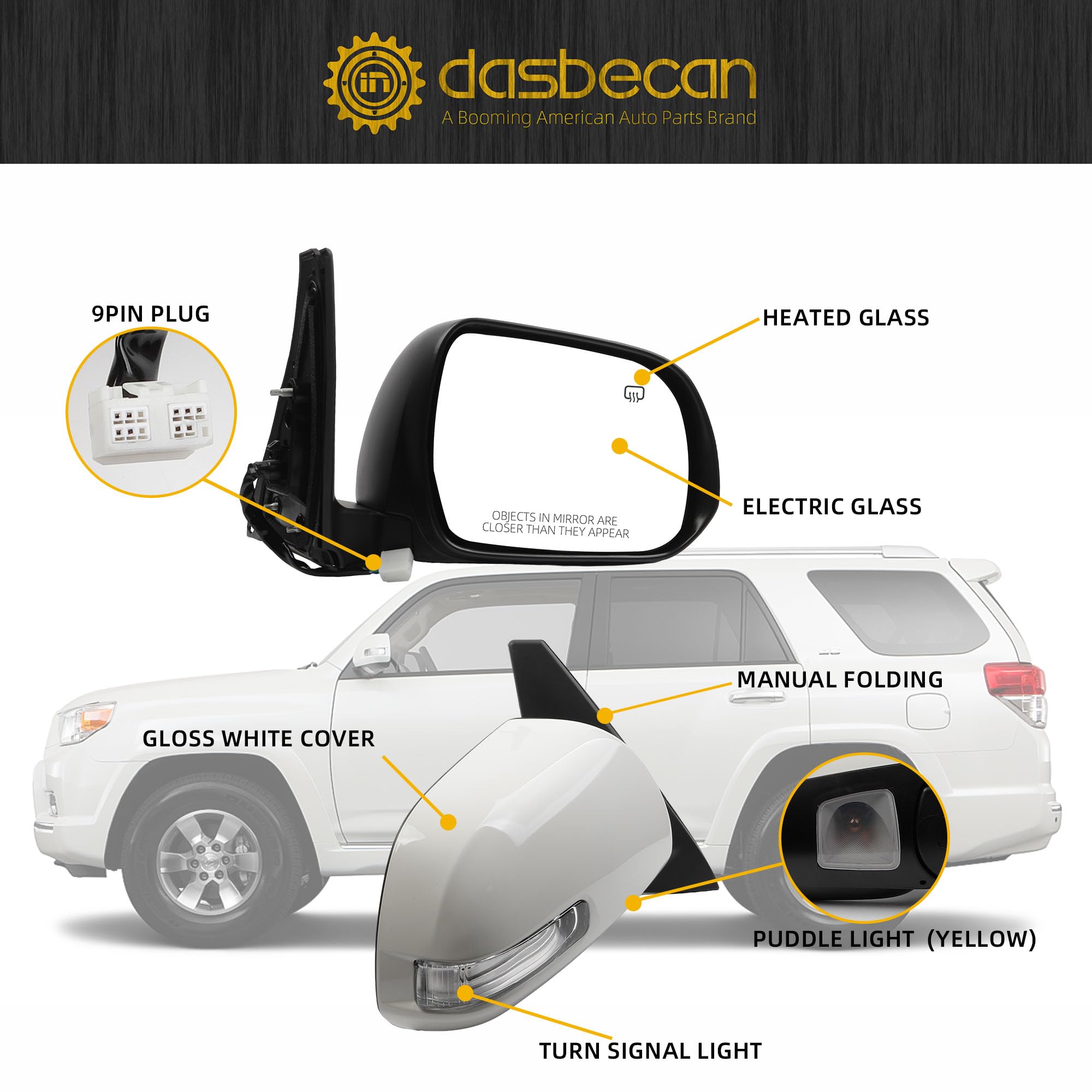 【Feature】 The Right Rear View Mirror is Equipped with Power Heated Glass丨Manual Folding丨Turn Signal丨Puddle Light丨Gloss White Cover
