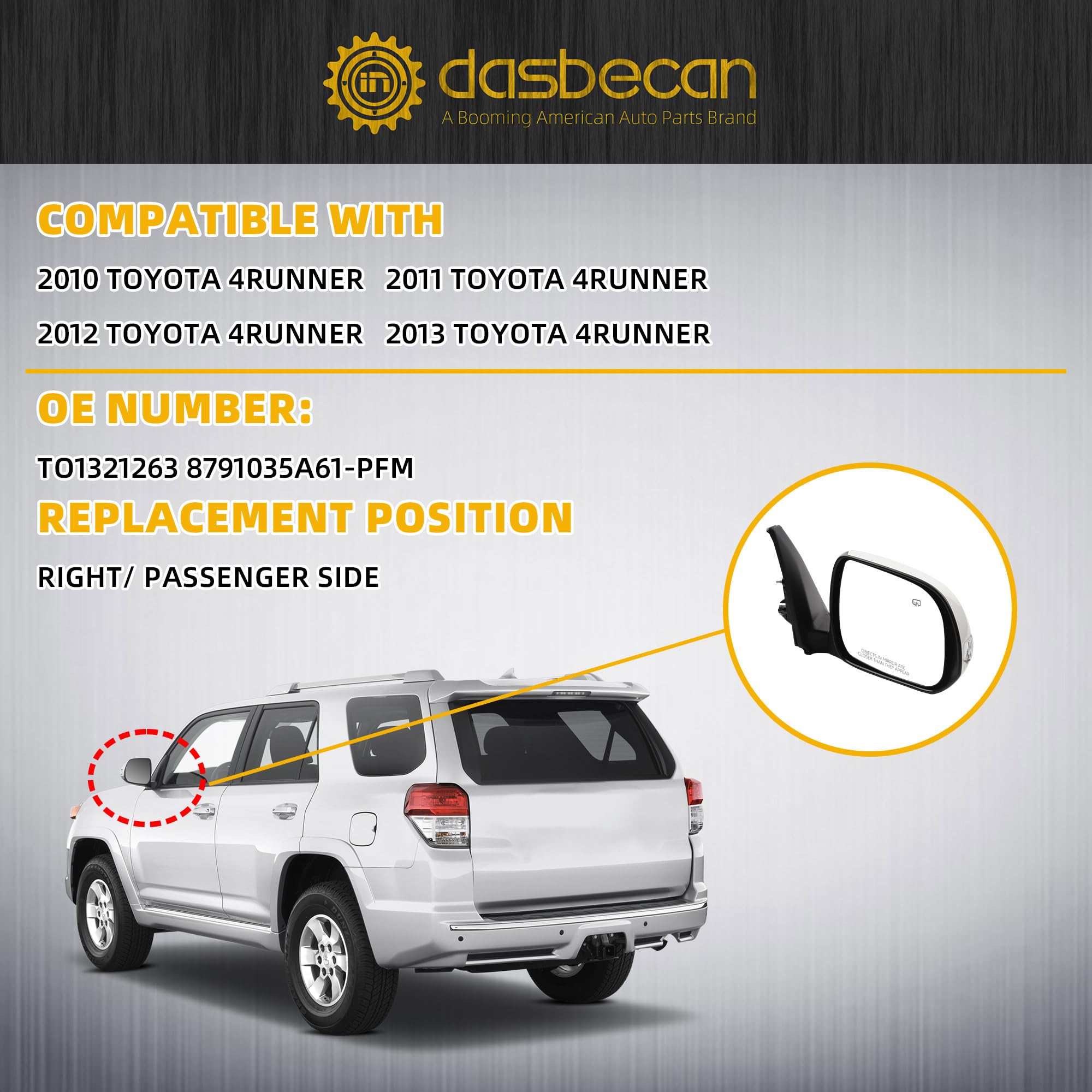 【Comaptible With】 The Right Side Mirror Compatible with 2010 2011 2012 2013 Toyota 4runner