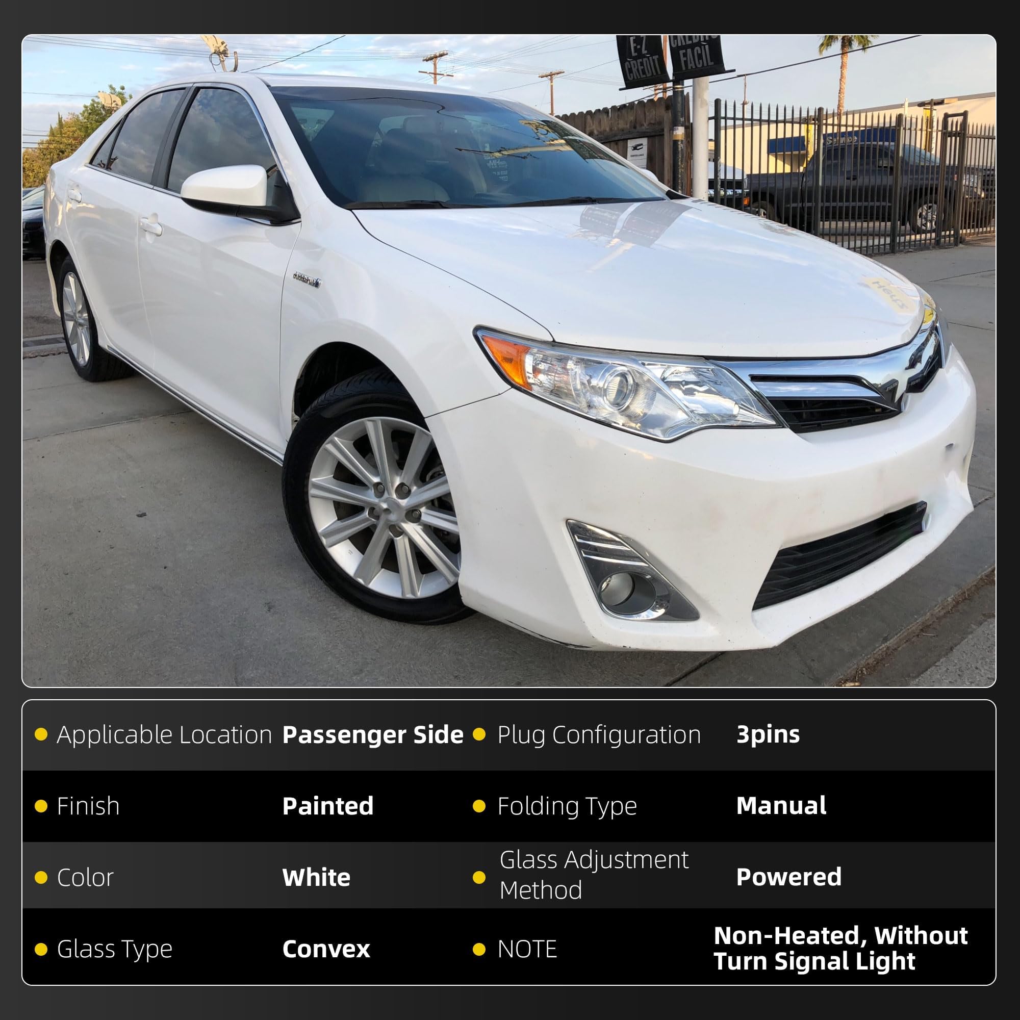 Compatible With: 2012-2014 Toyota Camry Passenger Right White side mirror