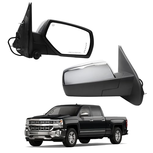 【Compatible With】 The Driver Side Mirror Compatible With 2014 2015 2016 2017 2018 Chevy Silverado, 2014 2015 2016 2017 2018 GMC Sierra (10pins) Chrome Cap