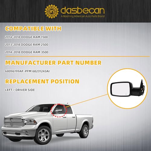 【Compatible With】 The Driver Side Mirror Compatible With 2014 2015 2016 2017 2018 Ram 1500 3500,2013 2014 2015 2016 2017 2018 Ram 2500, Chrome Cover 12pins