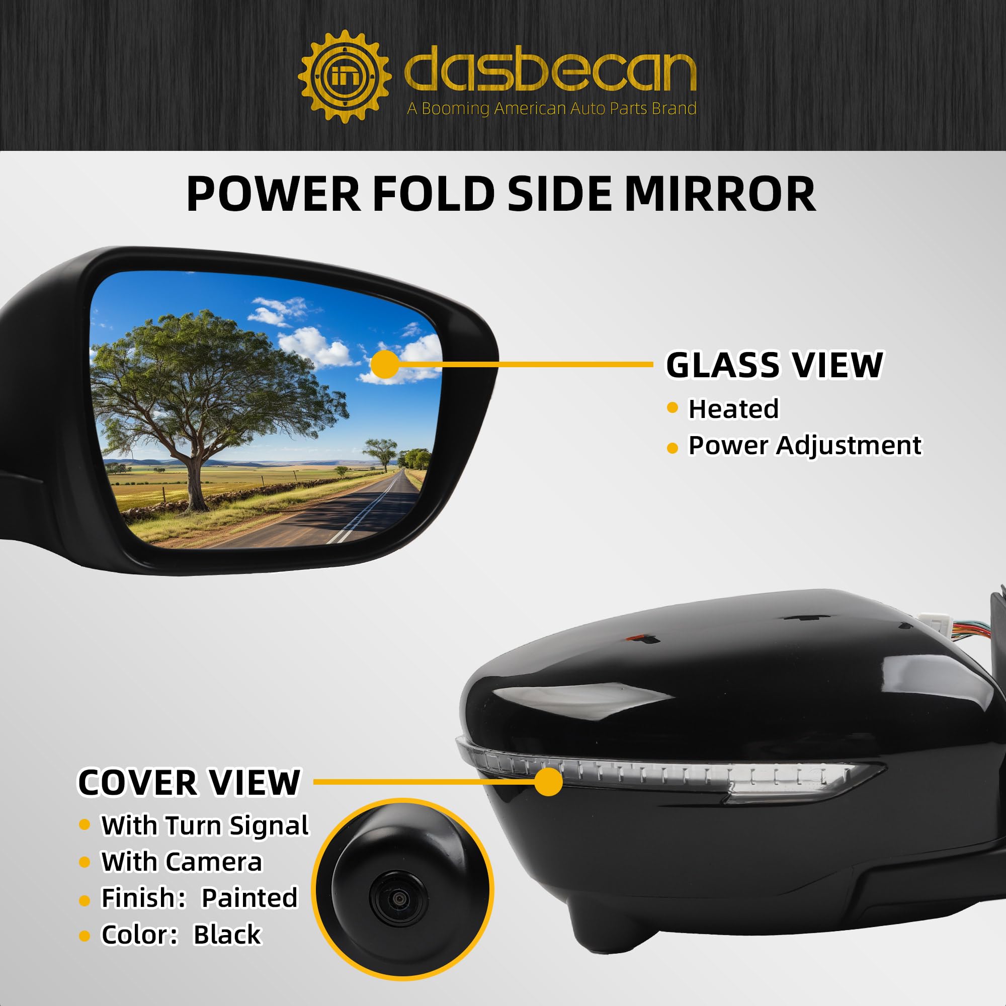 Function: Right passenger side, with Canera, Heated, Turn Signal, Manual folding (Not fit power folding), Powered adjustment glass, 13 pins