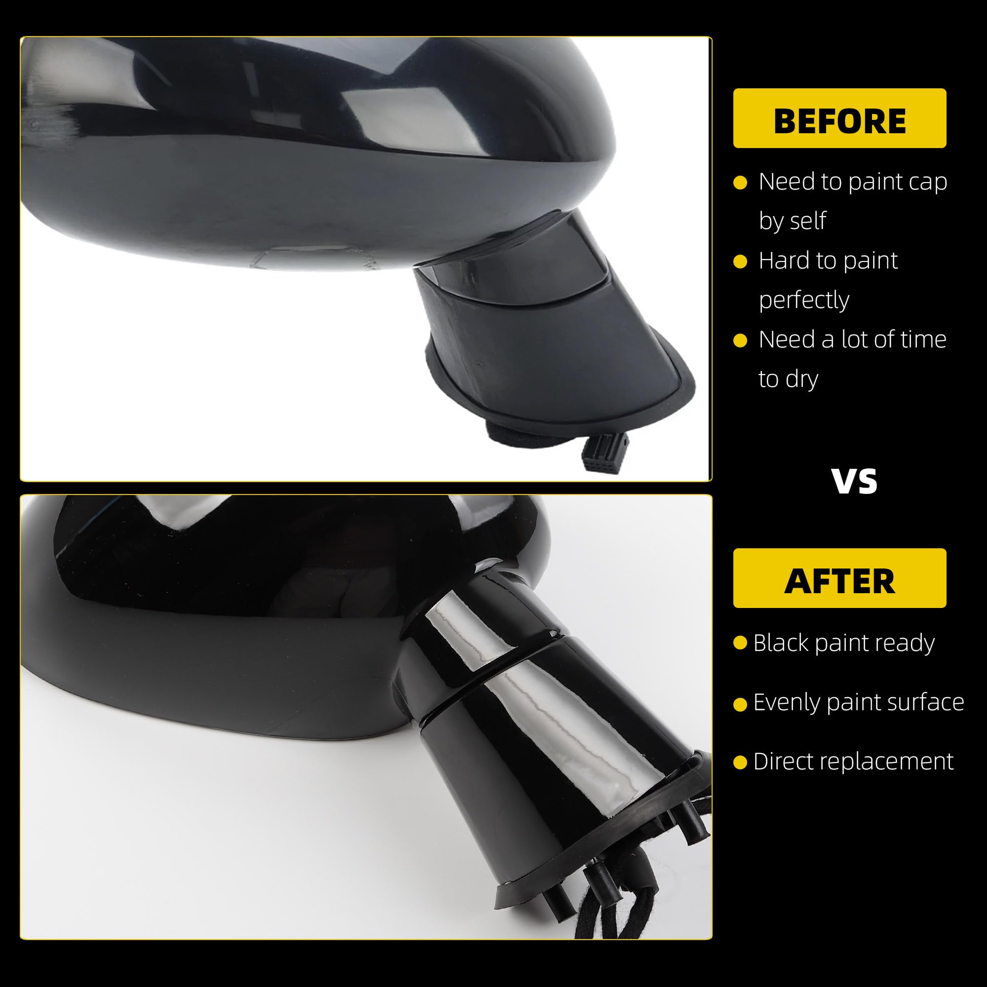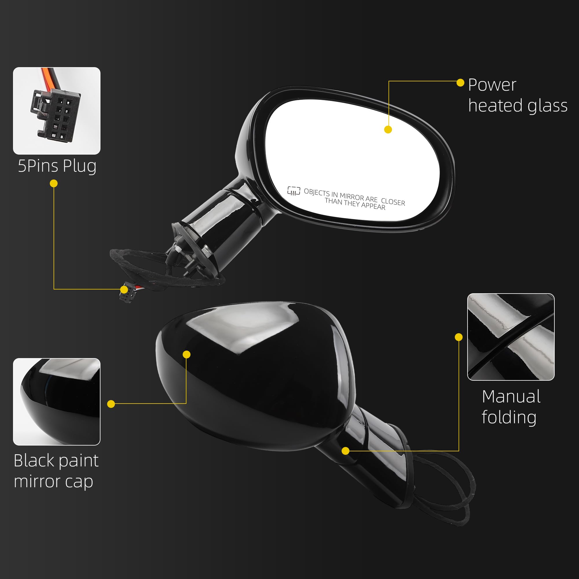 【Excellent Performance】Power Heated Glass and Manual Folding Functions, without Turn Signal Light, without Blind Spot Detection