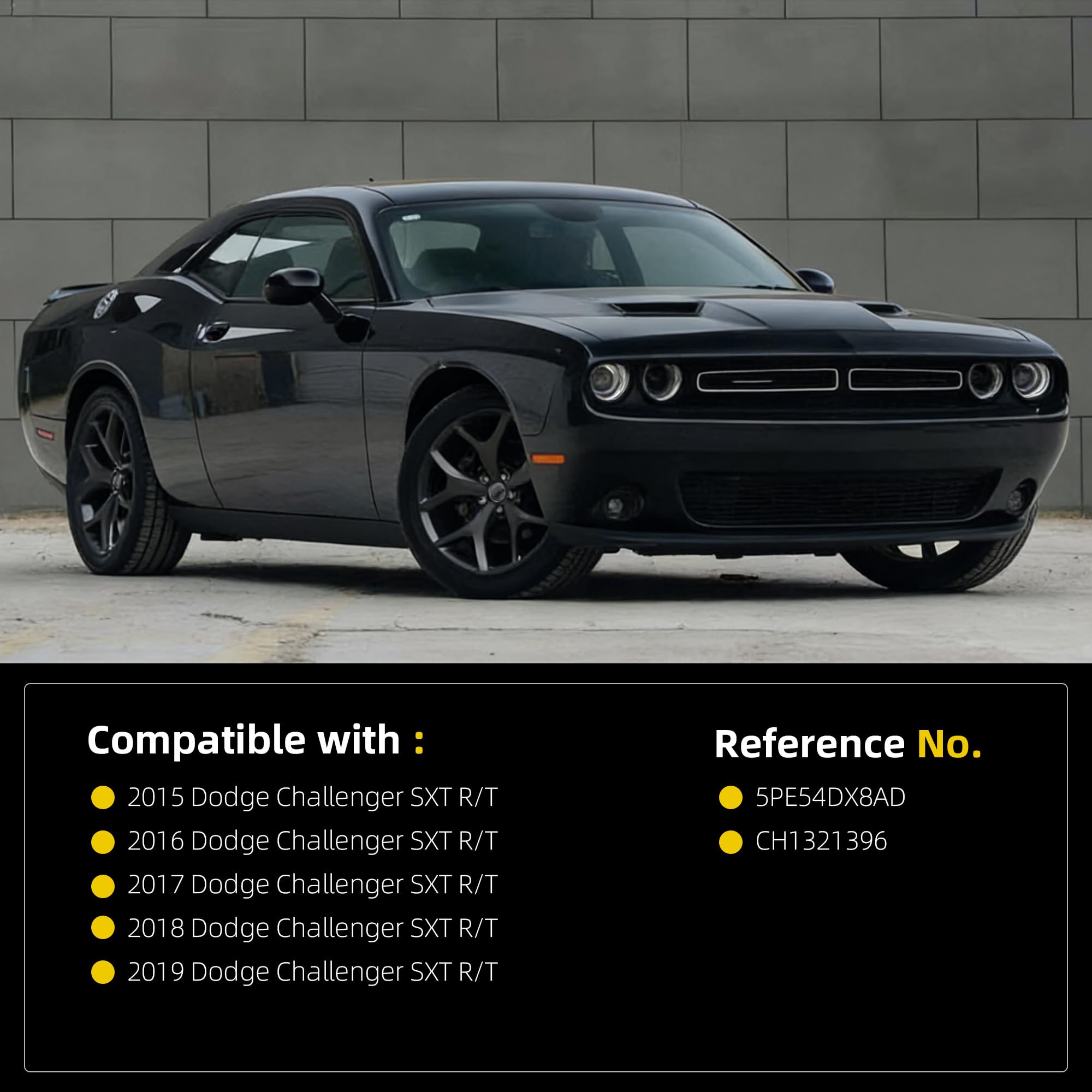 【Comaptible With】 The Right Door Mirror Compatible with Dodge Challenger SXT R/T (Shiny Black Paint) 2015 2016 2017 2018 2019