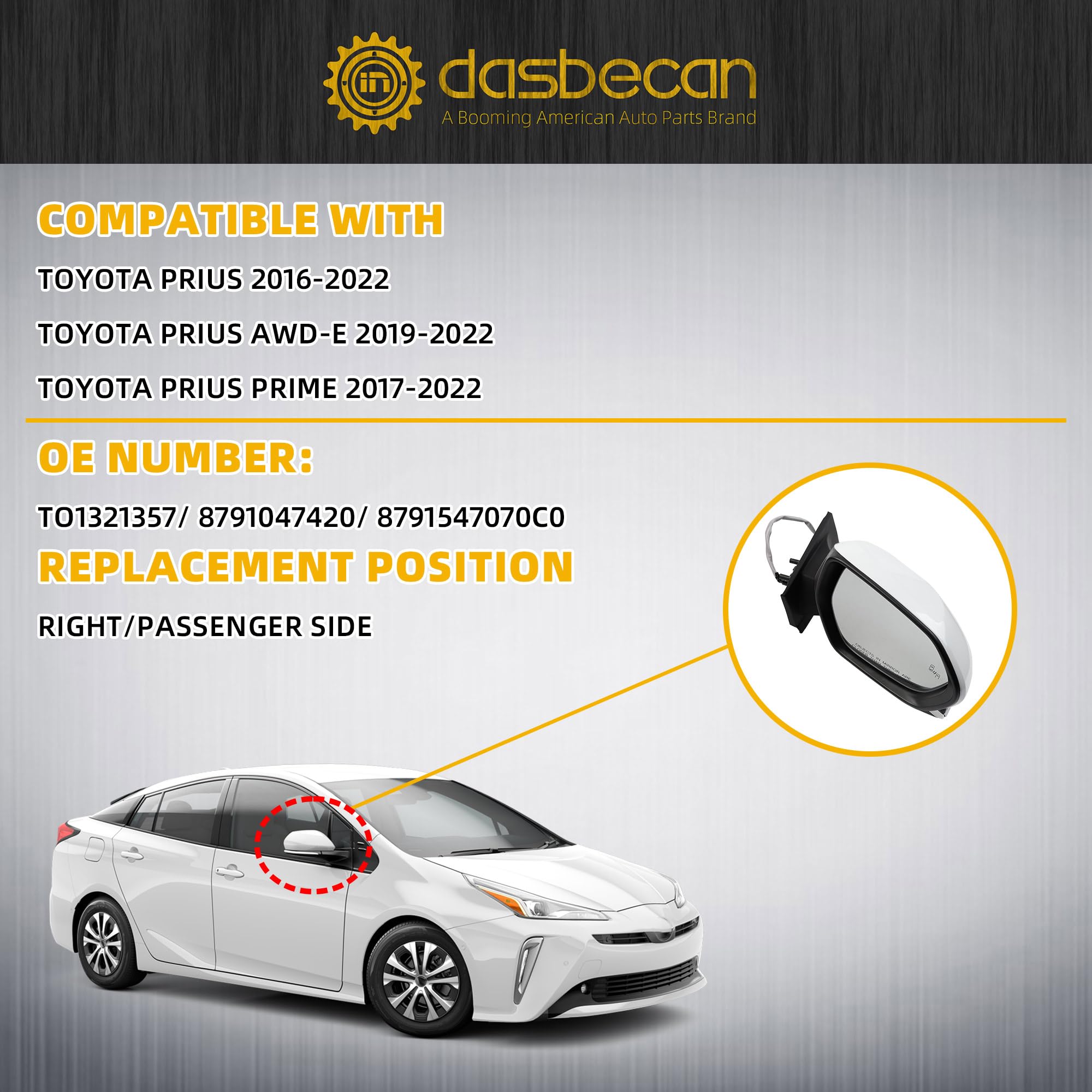 【Comaptible With】 The Right Side Mirror Compatible with 16-22 Toyota Prius, 19-22 Toyota Prius AWD-e, 17-22 Toyota Prius Prime