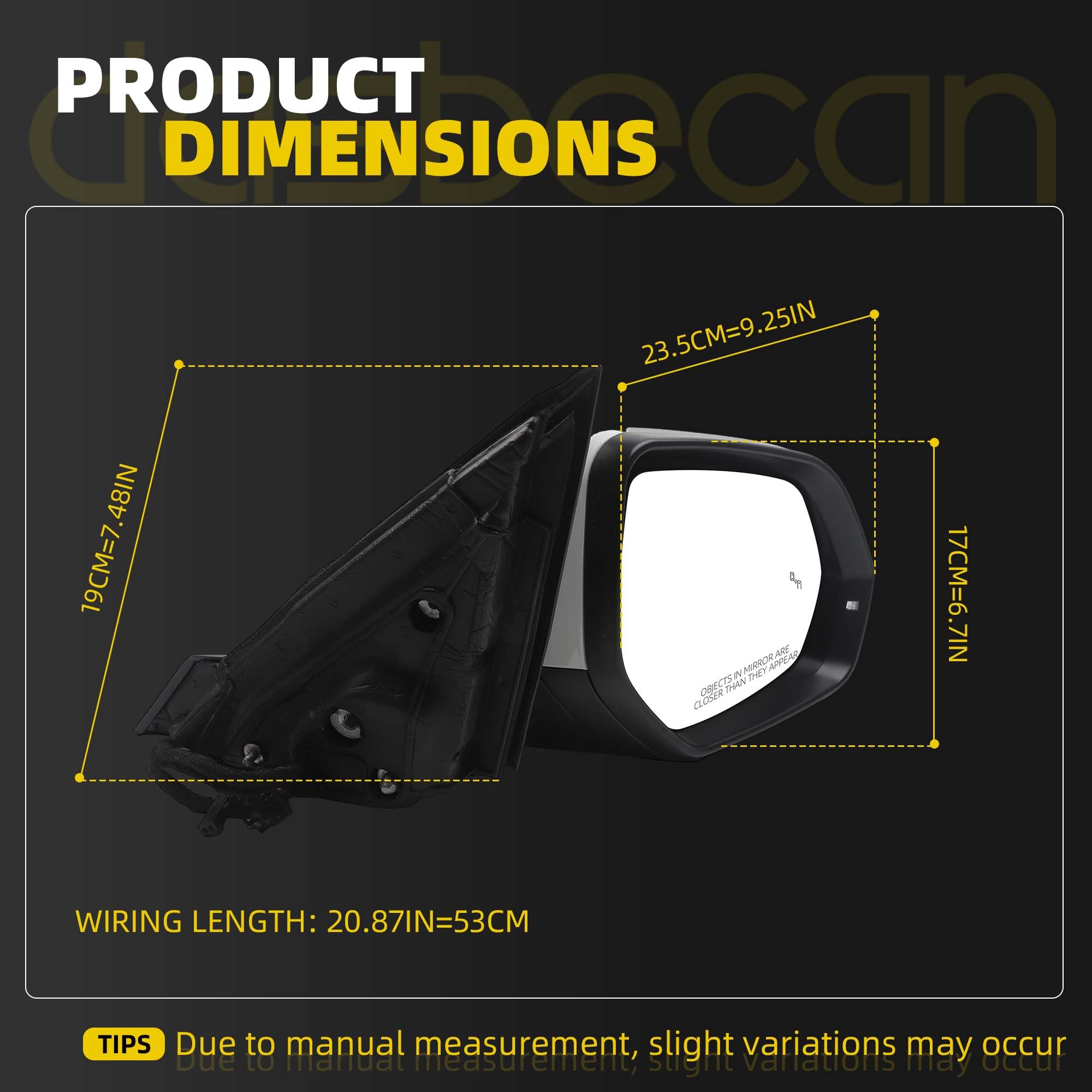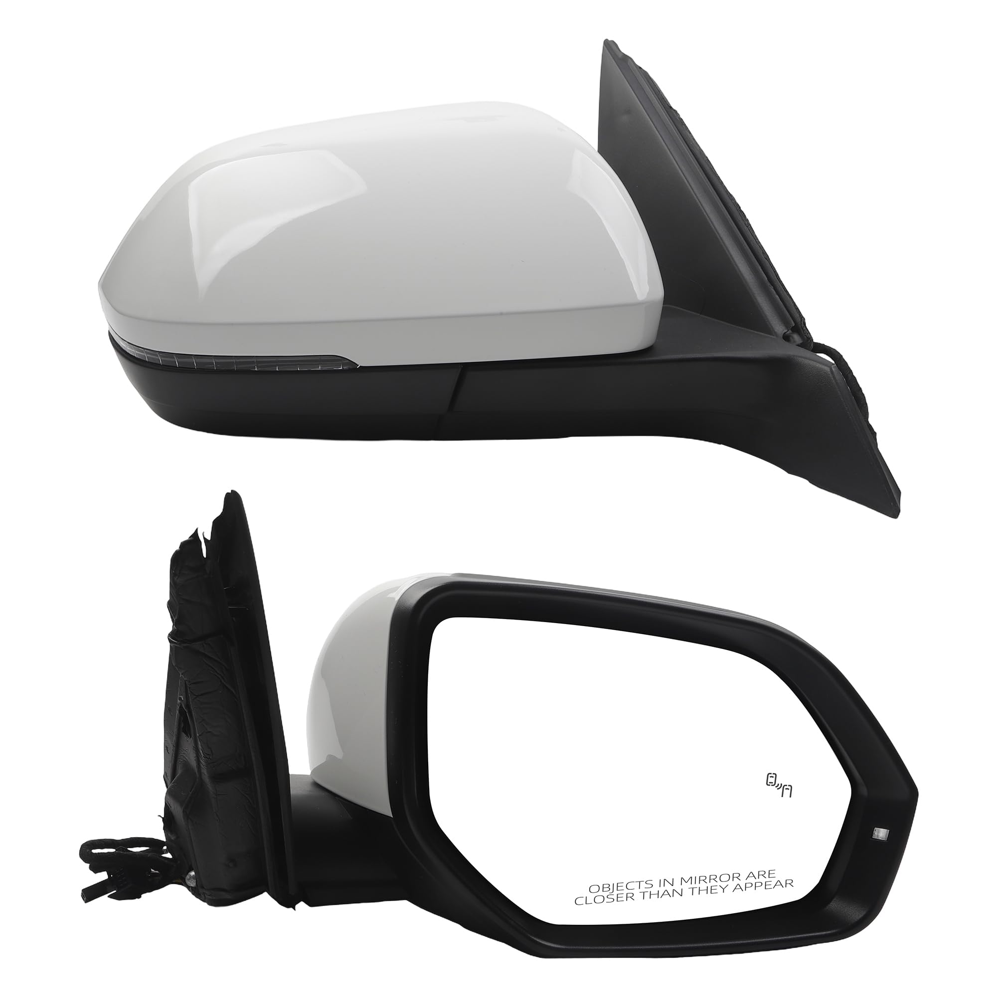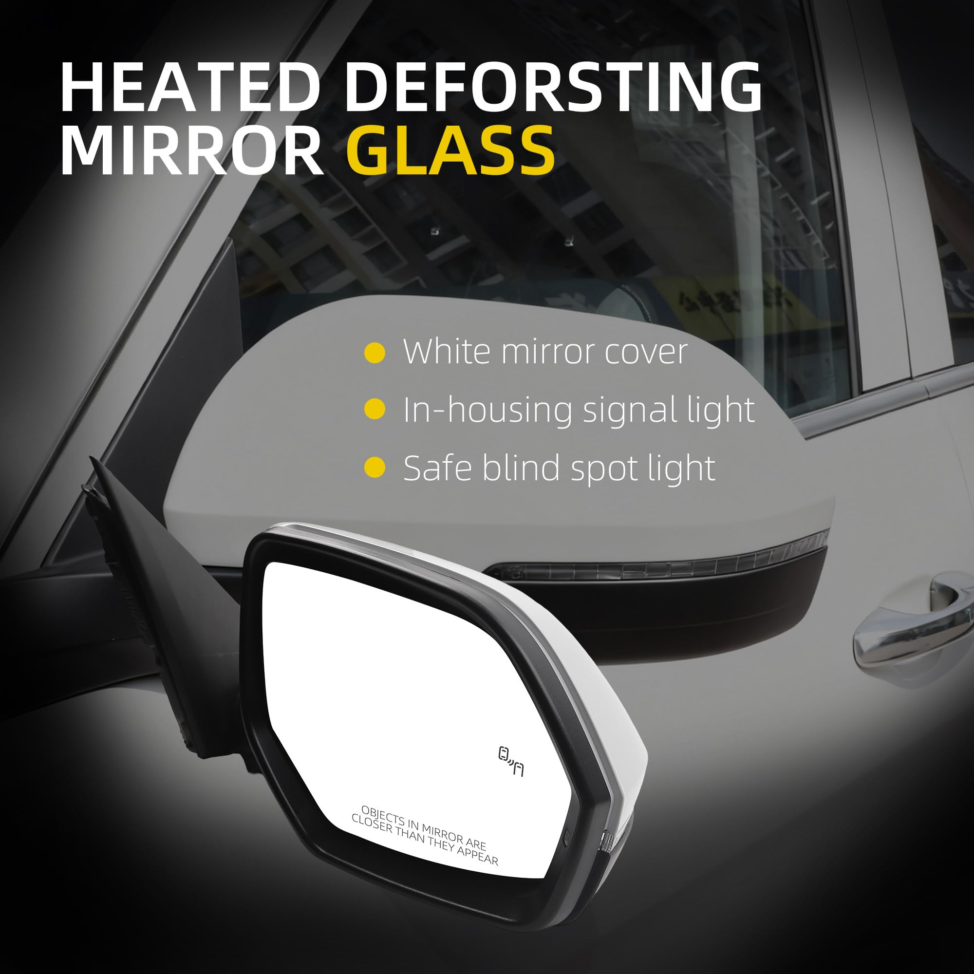 【Feature】 The Right Rear View Mirror is Equipped with Power Heated Glass丨Manual Folding丨Turn Signal丨Blind Spot Light丨White Mirror Cover