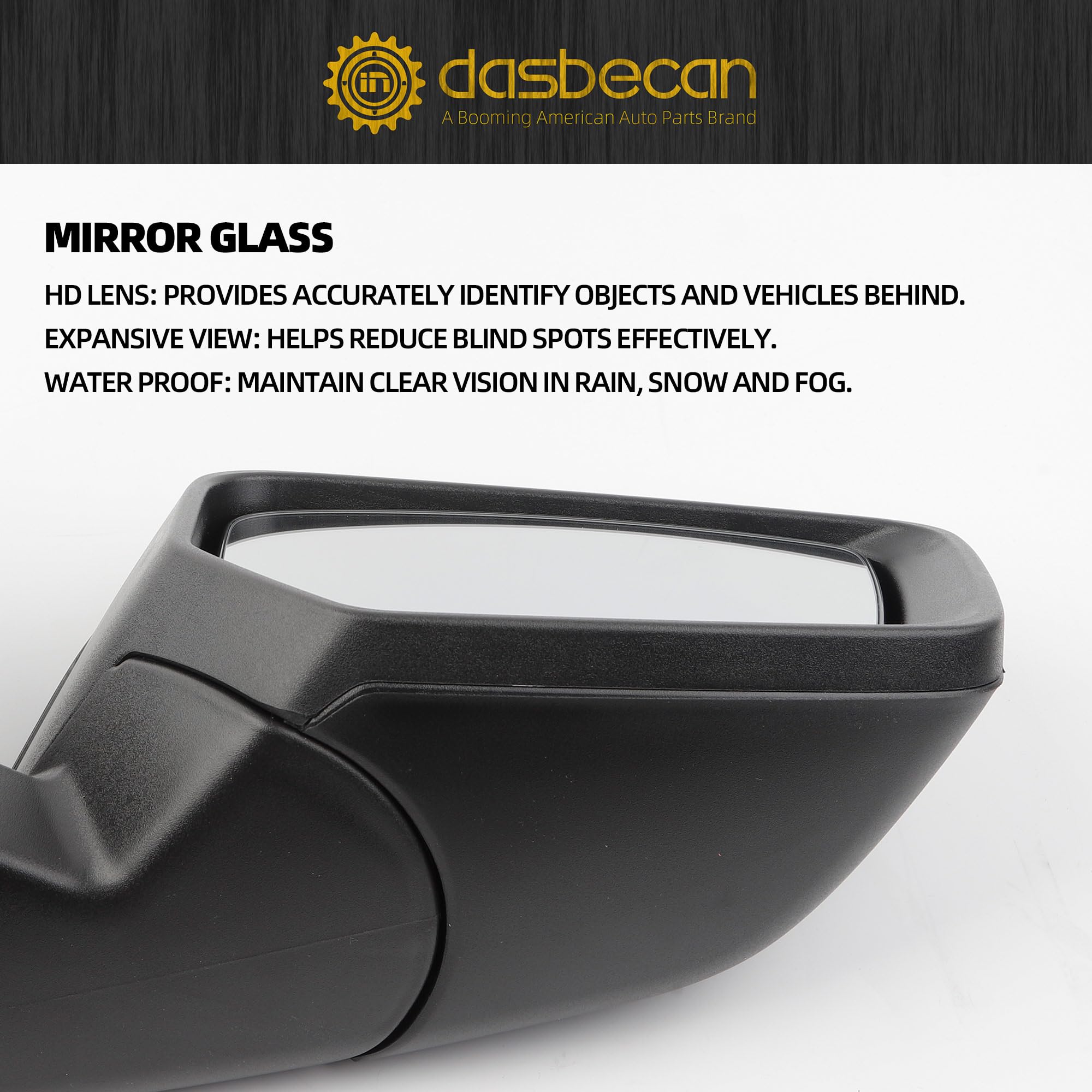 Function: Power Adjustable Mirror Glass, Manual Folding, Black Cover Paintable, 3 Pins Connector