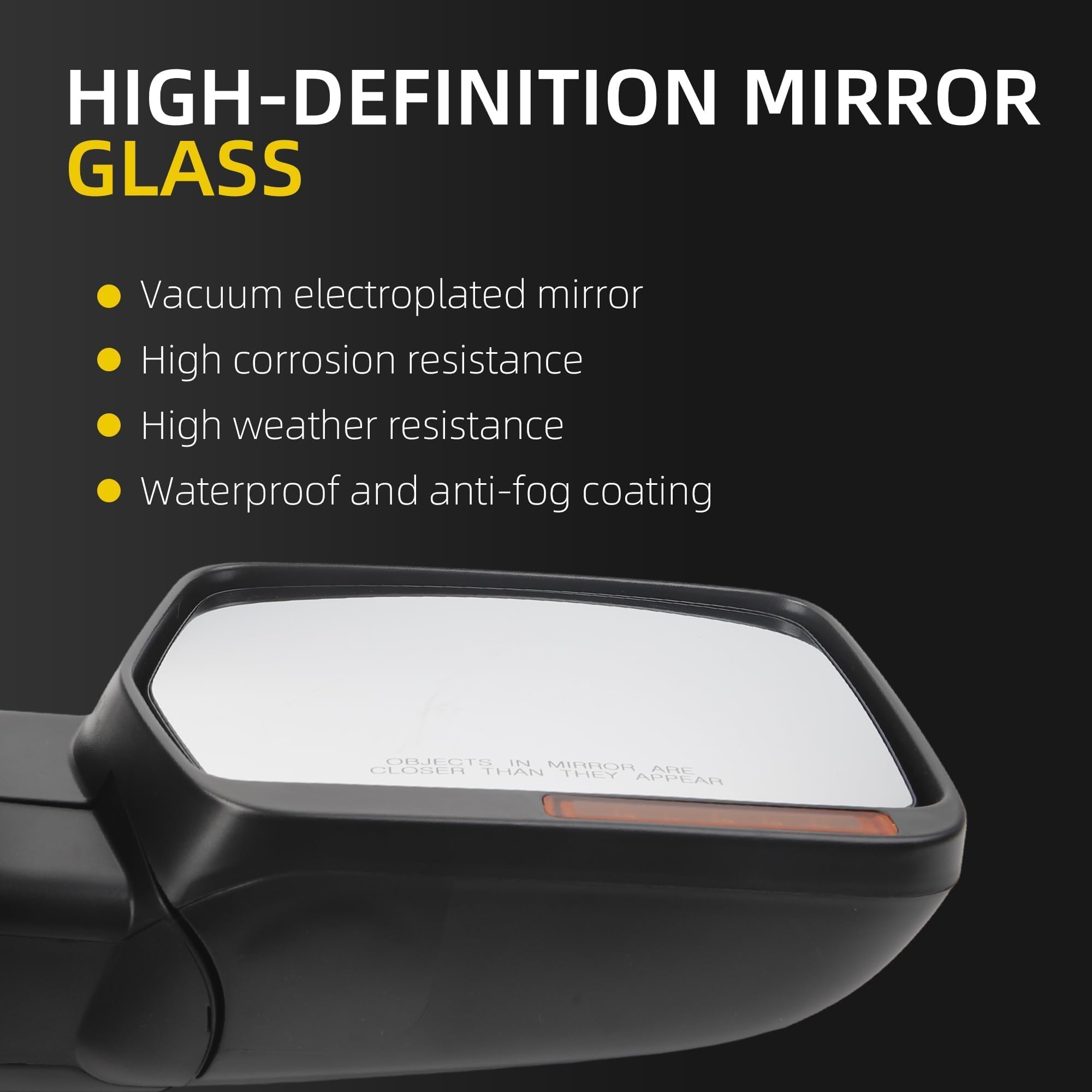 Strict quality control: Utilizing a robust ABS plastic shell and high-definition mirror, it expands the field of vision, reduces blind spots, and easily handles various weather conditions. For many years, we have been committed to producing automotive parts and components, establishing a rigorous production system so you can assured about product quality.